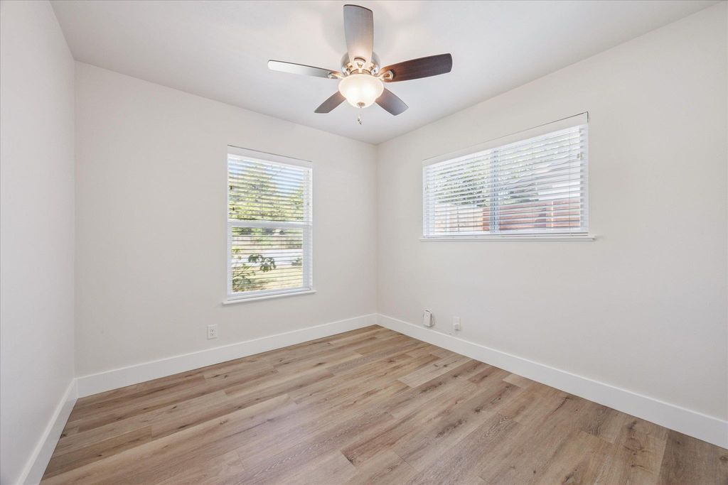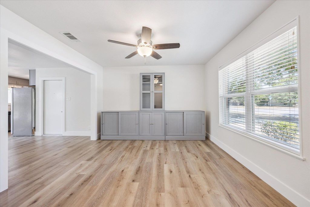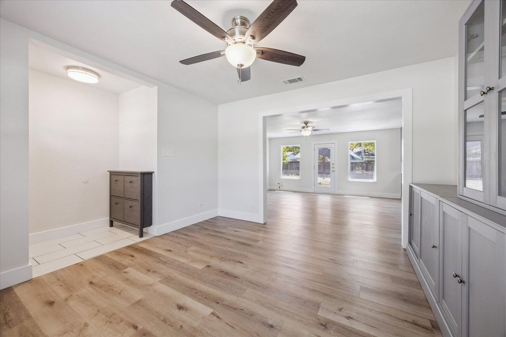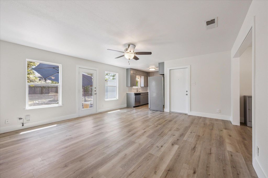 Welcome to 1913 Ohlen Road, a beautifully remodeled mid-century home offering 3 bedrooms, 2 bathrooms, and a spacious one-story layout. The open floor plan features double-pane windows that fill the space with natural light, no carpet, and stylish finishes throughout. The kitchen is updated with quartz countertops, modern cabinetry, and flows seamlessly into the living and dining areas. The private primary suite includes an ensuite bathroom with walk-in shower and a thoughtfully designed built-in closet system. Outside, enjoy a fenced backyard perfect for entertaining and relaxing. With its modern updates, timeless character, and functional design, this home is move-in ready and located in the heart of North Austin.