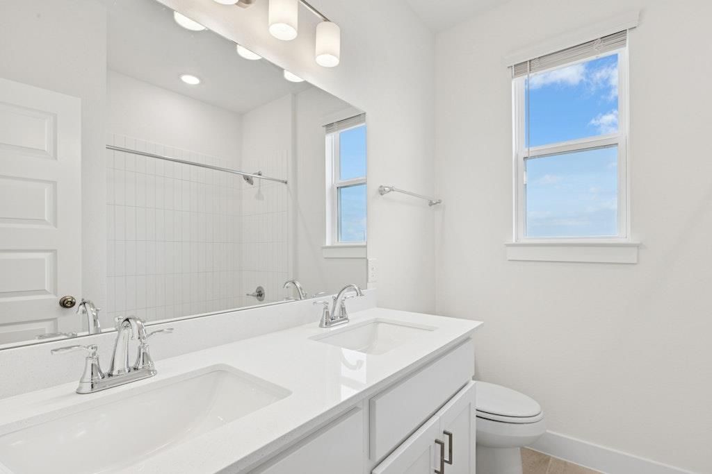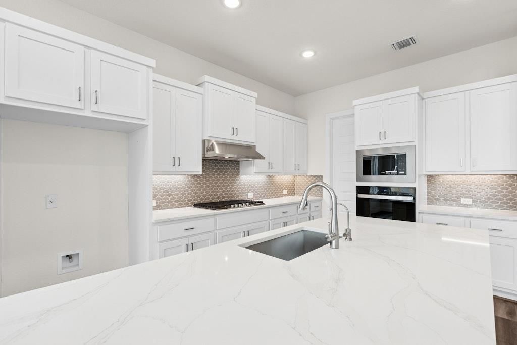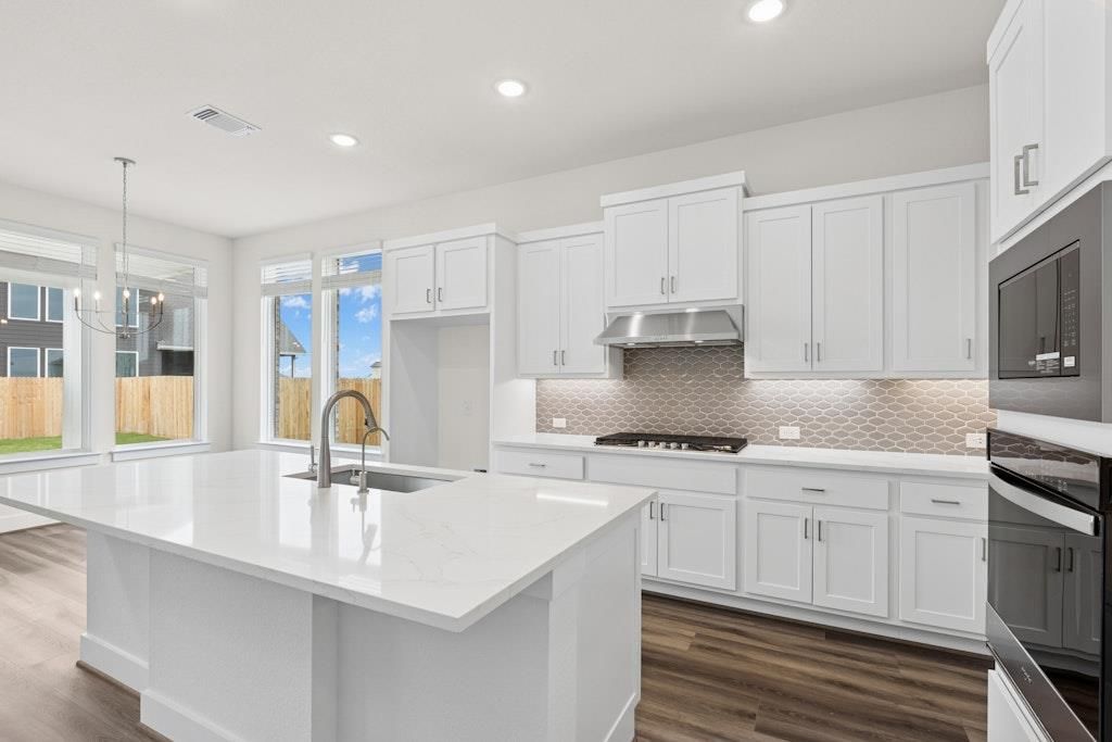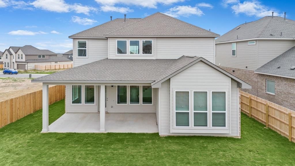 THIS HOME FEATURES OVER $48,000 IN UPGRADES! The Lamar plan is a two story with approximately 2,898 sf of living space. 4 bedrooms (primary plus 1 guest room down), 3 full bathrooms, powder bath, home office, game room, media room, luxury master bathroom, covered patio, and a 3-bay tandem garage. The homesite is approximately 7,565sf and faces East. The spacious kitchen features built-in stainless-steel appliances, quartz countertops, under cabinet lighting, 42" upper cabinets and more. The flooring is hard surface throughout the main areas, tile in the bathrooms, and carpet in the bedrooms. The quality construction includes; 10' ceilings and 8' doors throughout downstairs, open to below entry and family room, 3 sides masonry, Zip System sheathing, tankless water heater, and much more.