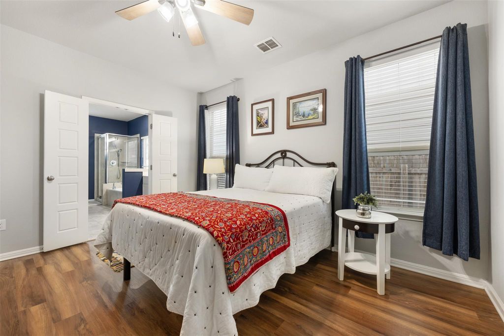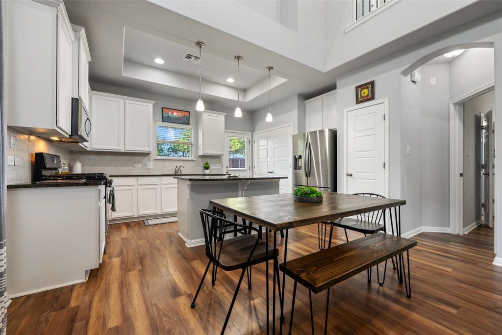 Lovely & updated 3 bedroom home with private backyard in highly desirable South Austin location. Very popular low maintenance, free-standing condo community that is beautifully maintained & just a stone's throw from the vibrant South Menchaca entertainment district. Gorgeous 2-story home has a terrific, open floorplan with dramatic 2-story entry & tons of natural light! Lovely, contemporary interior with fabulous island kitchen including 42" white shaker cabinets, granite counters, tile backsplash, pantry, breakfast bar & stainless appliances. Secluded primary bedroom retreat on main level has large ensuite bathroom with dual vanity sinks, garden tub, separate shower & large walk-in closet. Attractive staircase with wrought iron railing leads up to a large bonus room overlooking the main level - the perfect space for a home office, gameroom or secondary living room. Two additional bedrooms up with very spacious full bath. Half bathroom off entry hall. 2 car garage. Lower monthly HOA fees that cover trash & recycle, exterior water & front & backyard lawn maintenance. Convenient to Bergstrom airport, Mopac, I-35, tolls & downtown ATX & minutes from local attractions, coffee shops, restaurants & bars such as Armadillo Den, Moontower Saloon, Lustre Pearl, The Hive, South Austin Beer Garden & more!