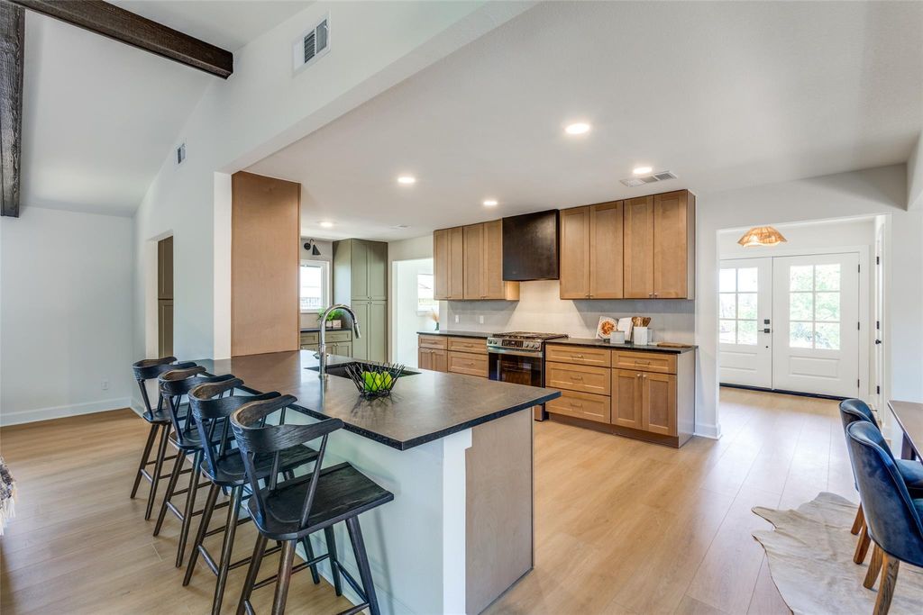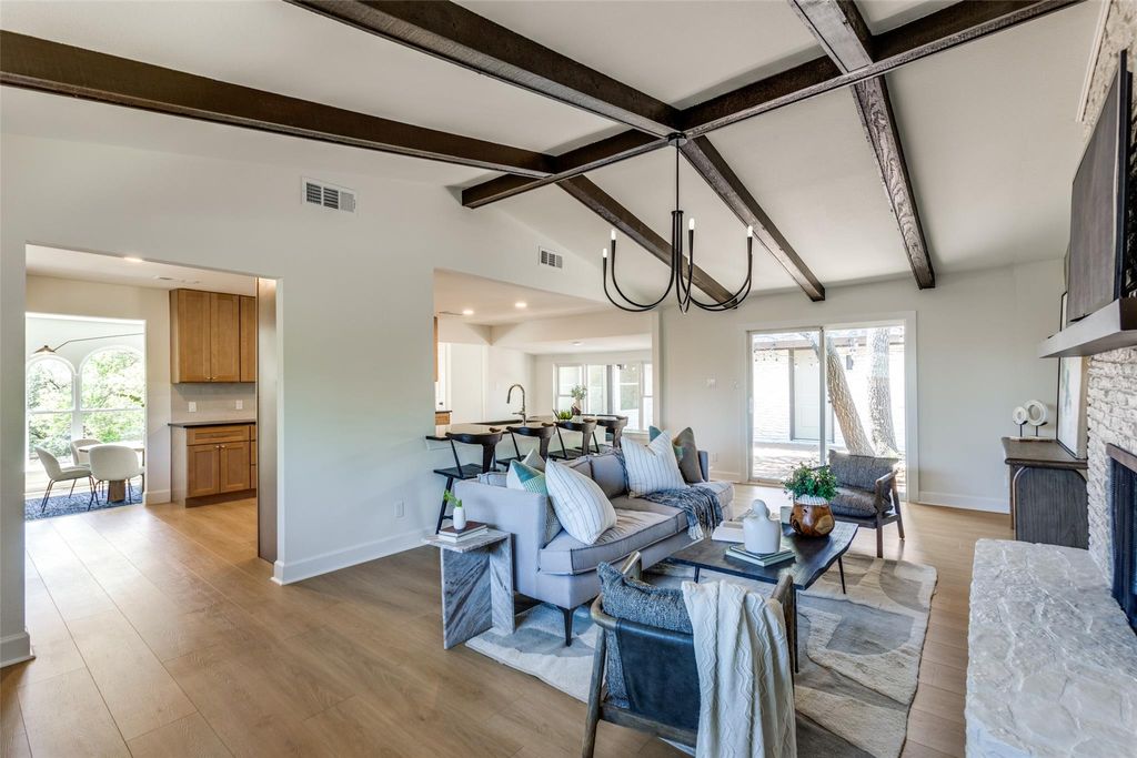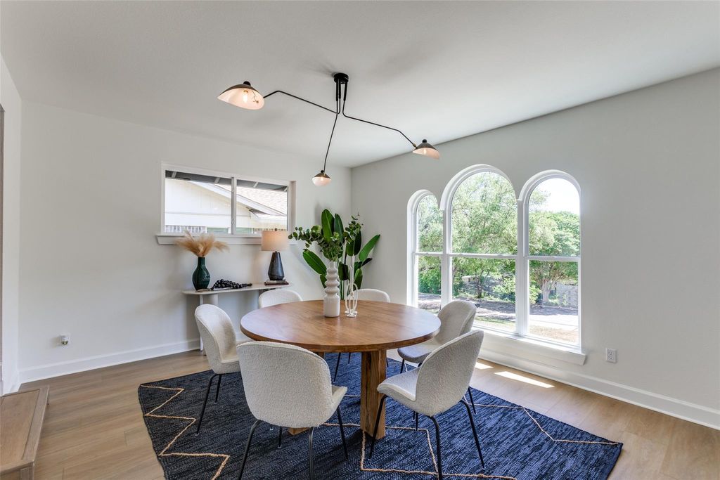 Seller is offering buyer concessions with a competitive offer! Discover elevated living in this fully updated 4-bedroom, 2-full bathroom residence, offering 2,243 square feet of refined elegance on a generous 0.20-acre corner lot. Nestled in the highly sought-after Oak Ridge neighborhood of North Austin, this exquisite home perfectly blends sophisticated design with everyday comfort "” all just minutes from The Domain's premier shopping, dining, and entertainment. As you enter the home, you are greeted with new LVP flooring throughout, paired with freshly installed carpet in all the bedrooms and closets. The living room features a striking stone fireplace with a custom floating mantel, soaring vaulted ceilings with rich, exposed wood beams, a sleek modern chandelier and designer accent wall creating an inviting yet upscale focal point for the home. The designer kitchen is a true showpiece, appointed with custom cabinetry, dramatic black countertops, a range hood, and premium stainless steel appliances. A thoughtfully integrated coffee nook adds a boutique touch, perfect for morning rituals. The primary suite and guest bedrooms offer ample space and style, with carefully selected finishes that feel both modern and timeless. Both bathrooms have been meticulously updated, showcasing spa-like features, sleek tile work, and designer lighting. Large windows fill the home with natural light and frame peaceful views of the private back patio courtyard, perfect for relaxing and entertaining. The home's interior and exterior have been freshly painted, and the stone exterior and driveway have been power-washed. Upgrades also include a new HVAC, new hot water heater, 1 year old roof and landscaping that enhances curb appeal. With proximity to major tech employers, top-rated schools, and the vibrant energy of The Domain, this home offers an unparalleled lifestyle opportunity in one of North Austin's premier communities.
