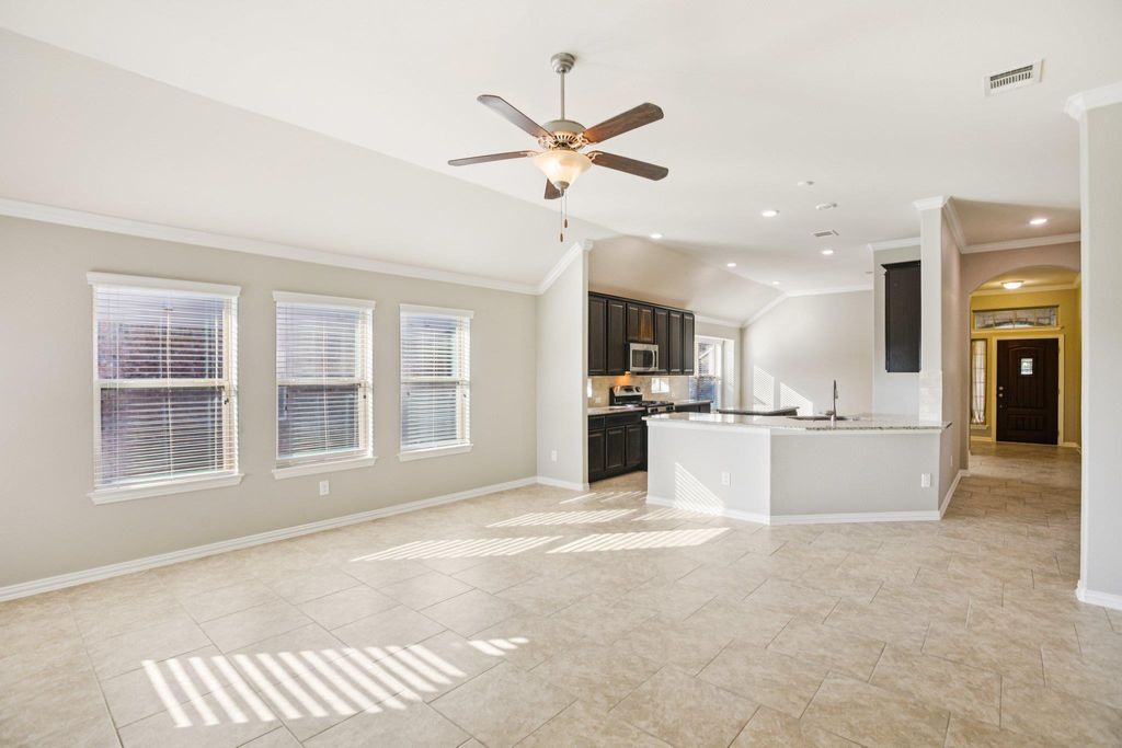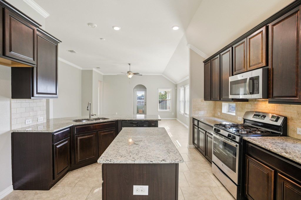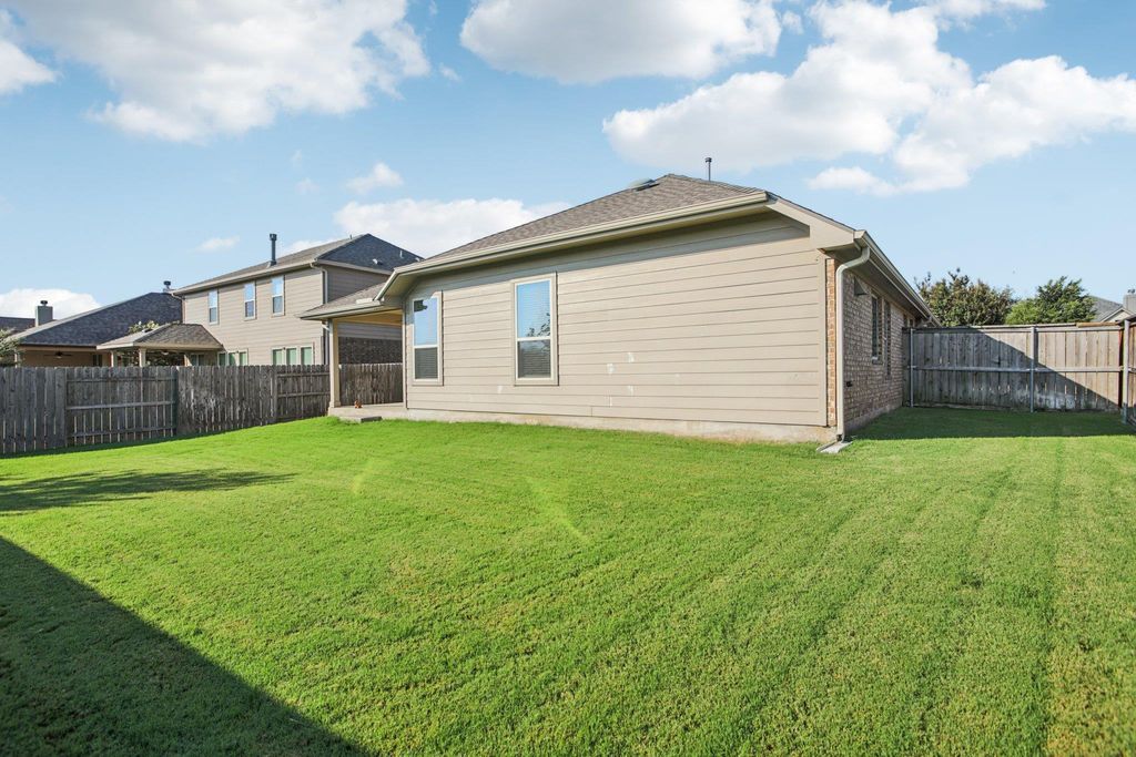Welcome to 3108 Honey Peach Way, a thoughtfully designed home in Pflugerville's desirable Falcon Pointe community. Ideally set on the corner of a quiet, one-way-in/one-way-out section of the neighborhood, this home offers both privacy and peace of mind. A large open greenbelt separates the property from the main street, while three sides of fencing are maintained by the HOA for added convenience and low-maintenance living. Inside, the spacious open-concept layout is perfect for modern living. The bright kitchen flows seamlessly into the living and breakfast areas, creating the ideal space for entertaining and everyday life. Just off the entrance, a flexible room works beautifully as a formal dining space or private home office. Between the two guest bedrooms, you'll find an additional open flex area that can serve as a game room, study nook, tucked away playroom or cozy lounge. Freshly updated with brand-new carpet installed by the owner after move-out, the interior feels clean, welcoming, and move-in ready. The thoughtful floor plan continues with the guest bath's Jack-and-Jill design, giving each bedroom its own private sink room while sharing a central bath. The primary suite is a relaxing retreat, complete with a spacious bedroom, walk-in closet, and en-suite bath featuring dual vanities and plenty of storage. Additional highlights include a covered patio for outdoor dining, a fenced backyard with room to play, and access to Falcon Pointe's highly regarded amenities, parks, walking trails, sports courts, and community pools. With its versatile layout, convenient location, and inviting neighborhood setting, 3108 Honey Peach Way is ready to welcome you home.