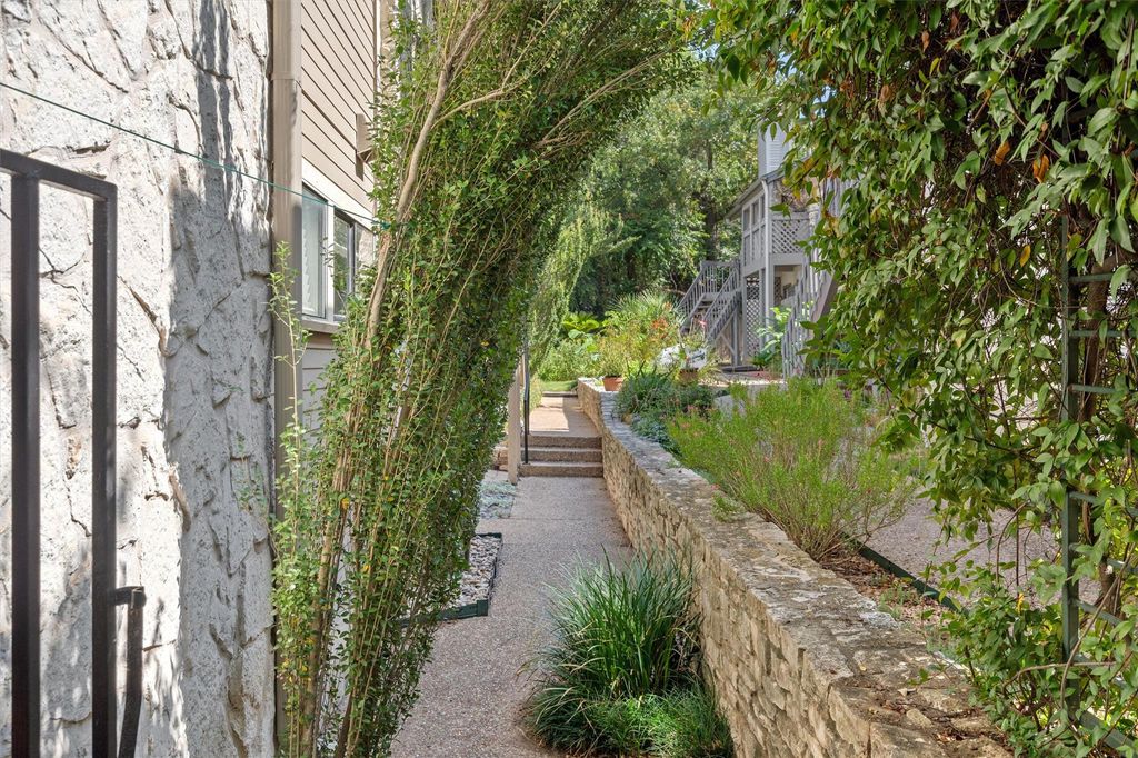 This top-floor Tarrytown condo strikes the balance between convenience and privacy. Tucked behind a gated entrance shared with one other unit, it feels like a hidden retreat while keeping you close to everything that makes Austin special: Downtown, UT, Lake Austin, Barton Springs, and local favorites like Mozart's and Hula Hut are all within easy reach. Its unbeatable location also makes it an excellent investment property, with strong appeal for both long-term living and rental potential thanks to its proximity to the city's core. The single-level layout is open and easy to live in, with the living room, dining, and kitchen seamlessly together. Filled with natural light the Living room opens to the balcony, with a fireplace and a built-in bar with beverage fridge for entertaining. The kitchen has timeless style with marble counters and backsplash, SS appliances, and a window box that brightens the space. Both bedrooms have balcony access, including the primary suite, which adds a walk-in closet and an ensuite finished in marble with a walk-in shower. Throughout the condo you'll notice thoughtful touches, custom cabinetry, a towel warmer in the primary bath, a farmhouse sink, and hidden electrical details that make daily living more functional. There's also attic storage, a shed, and secure communal storage for bikes. Outside, mature trees and lush landscaping surround a raised courtyard, giving the property a calm, tucked-away feel. You have two reserved parking spots, one covered, which is rare here. The location and walkability are hard to match, tree-lined streets take you to Westenfield Park and Lions Golf Course, while Clarksville dining and all that downtown has to offer are just minutes away. If walking isn't your thing, a bus stop is just steps away for easy commuting. Whether you're looking for a smart investment or a place to settle in for yourself, this condo delivers both opportunity and lifestyle in one of Austin's most established neighborhoods.