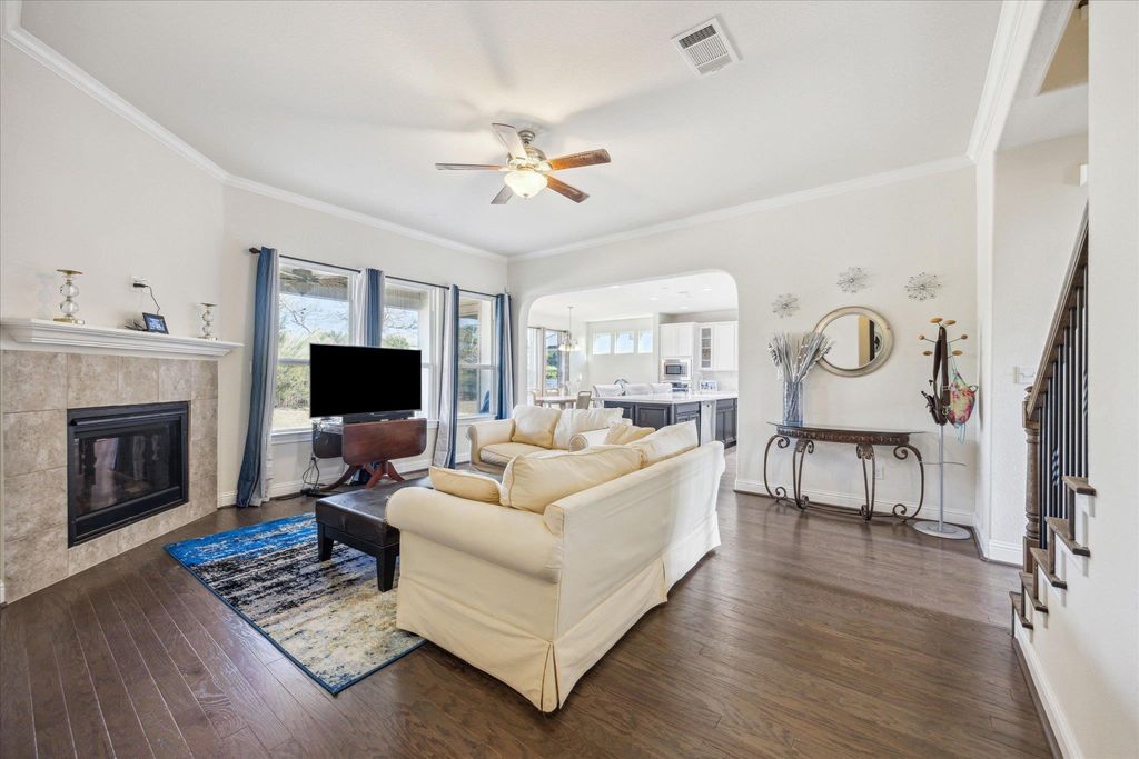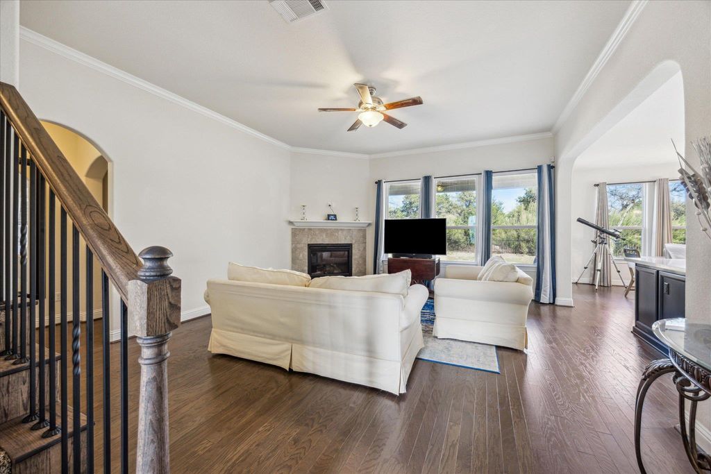 Nestled in the rolling hills of Spicewood, this 4-bedroom home offers a peaceful retreat in the highly sought-after Lake Travis ISD. Backing to a lush greenbelt, it provides privacy and a scenic backdrop, while still being minutes from Lake Travis, shopping, and dining. Built with longevity in mind, the home features a clay tile roof, an oversized garage, and an open floor plan designed for comfortable living. The kitchen, with its granite countertops and spacious island, is perfect for gathering, while large windows fill the home with natural light. The primary suite offers a private escape with a walk-in closet and spa-like bath. A prime location and the charm of Hill Country living, this home is ready to welcome its next owners.