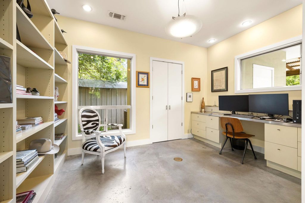 Architect-Designed Texas Luxury Home. Custom Remodel by Richard Standifer and Furman & Keil Architects. Home was masterfully remodeled in 2006. Nestled in a tranquil, tree-covered setting, this 2246 SF home offers architectural distinction, custom finishes, & serene indoor-outdoor living. Luxury Highlights: Covered Front Patio -- a gracious & welcoming entrance perfect for entertaining or relocating outdoors; Chef's Kitchen -- featuring patina-enhanced stainless steel countertops, gas range cooktop & built-in convection oven; Parlor-style Living Room -- Sophisticated yet inviting with timeless architectural detail; Formal Dining Room + Casual Patio Dining -- ideal for both refined dinners & everyday gatherings; Second Living Area / Library -- A flexible retreat with hidden glass, sliding doors, perfect as a reading lounge, study, media space or quiet conversations; Private Upstairs Primary Suite -- Elevated for privacy, offering peaceful tree-filled views; Gargantuan Walk-In Closet -- A boutique-style space so expansive you can browse your wardrobe for hours ... true luxury; Spa-Inspired Primary Bath -- Features a massive walk-in shower, luxurious finishes & natural light. This one-of-a-kind home combines architectural pedigree with relaxed elegance & high-end livability -- a rare opportunity for luxury homebuyers seeking craftsmanship, comfort and distinction.