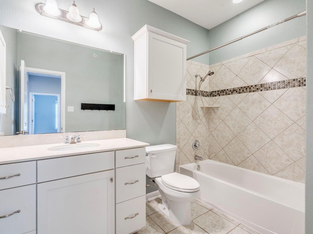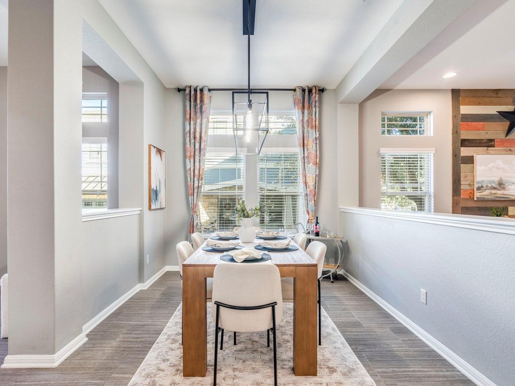 Don't miss this fabulous end unit condo, situated at the front of the neighborhood and just a quick jaunt to the club! The open layout and abundance of natural light make you forget you're in a condo, but you'll definitely appreciate the low utility bills and insurance premiums that come with it! Upgraded large format tile runs throughout the main level, with rich hardwoods on the stairs and to the gameroom, plus brand new carpet in all bedrooms. You'll love the wide open kitchen and living area with granite counters, TONS of cabinet space with added uppers, built-in stainless appliances, a wood accent wall and an abundance of natural light from the wall of windows. The lower patio off the kitchen is perfect for grilling & chilling, or a quiet morning coffee. A spacious dining area, large under-stair storage closet and 1/2 bath are also downstairs. Upstairs you'll find the primary suite with a ballroom sized bathroom, frameless walk-in shower, corner soaking tub, dual vanities, spacious walk-in closet & an upper level balcony overlooking the shared greenspace. Two secondary bedrooms both offer walk-in closets & ceiling fans, and the MASSIVE enclosed gameroom with storage/office nook and closet makes the perfect secondary living or teen apartment with it's own large balcony with hilltop views. Additional home features include a Ring doorbell, Nest thermostat, Sonos system with built-in speakers, security system, and a large bump out plus upper storage racks in the garage for SO MUCH STORAGE! You'll love the lock & leave lifestyle, with two ways in & out of the neighborhood, amazing schools, an interior trail system as well as a lesser known trail for nature/exploring enthusiasts, community park/pavilion/sport court, and of course Twin Creeks Country Club with various levels of membership for your enjoyment. Note - there is no longer a mandatory club requirement for Sunset Ridge owners - whoop! Become a part of this amazing community today - you'll be glad you did!