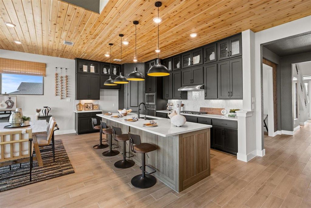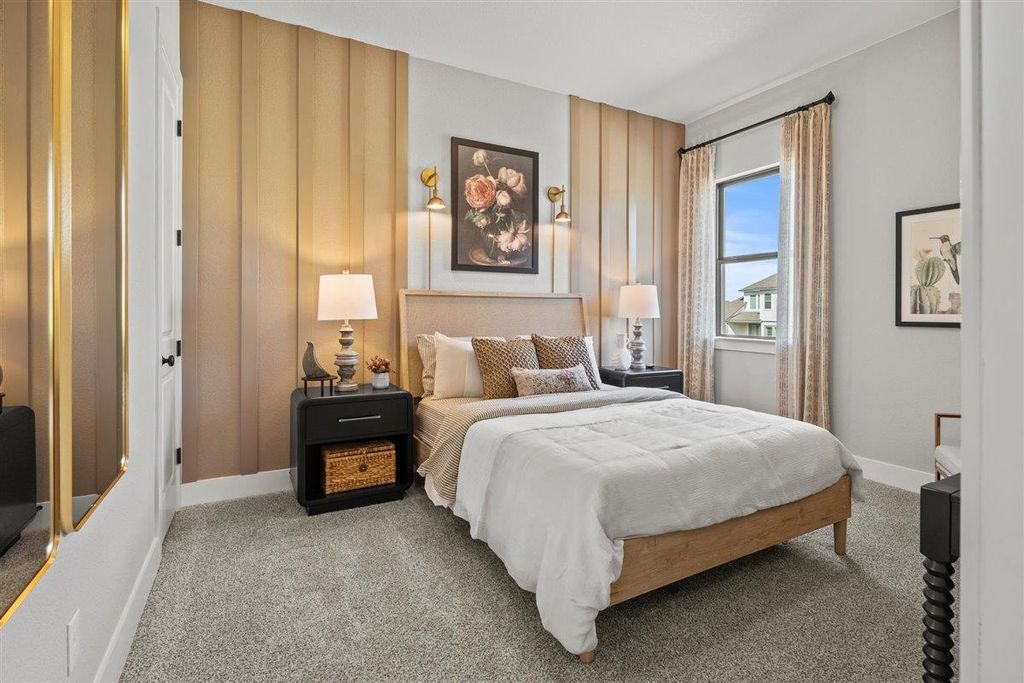 MODEL HOME FOR SALES - Final Opportunities for a new home in SWEETWATER!! Price includes all home furnishings. This impressive two-story layout offers 5 spacious bedrooms, 3.5 baths, an optional study, and a built-in tech center that is perfect for remote work, homework stations, or creative projects. The heart of the home is the open concept living area with beamed, vaulted ceilings and oversized windows in the family room that flood the space with natural light and create an inviting, airy atmosphere that's perfect for both entertaining and everyday living. The gourmet kitchen is a showstopper, featuring an oversized island ideal for gathering with family and friends, plus a casual breakfast area for laid-back meals. Tucked away for privacy, the luxurious primary suite boasts dual vanities, a Texas-sized walk-in shower, and a massive walk-in closet that fashion lovers will adore. Every detail is thoughtfully designed to balance comfort, style, and function. This home not just BEAUTIFUL, but truly livable.