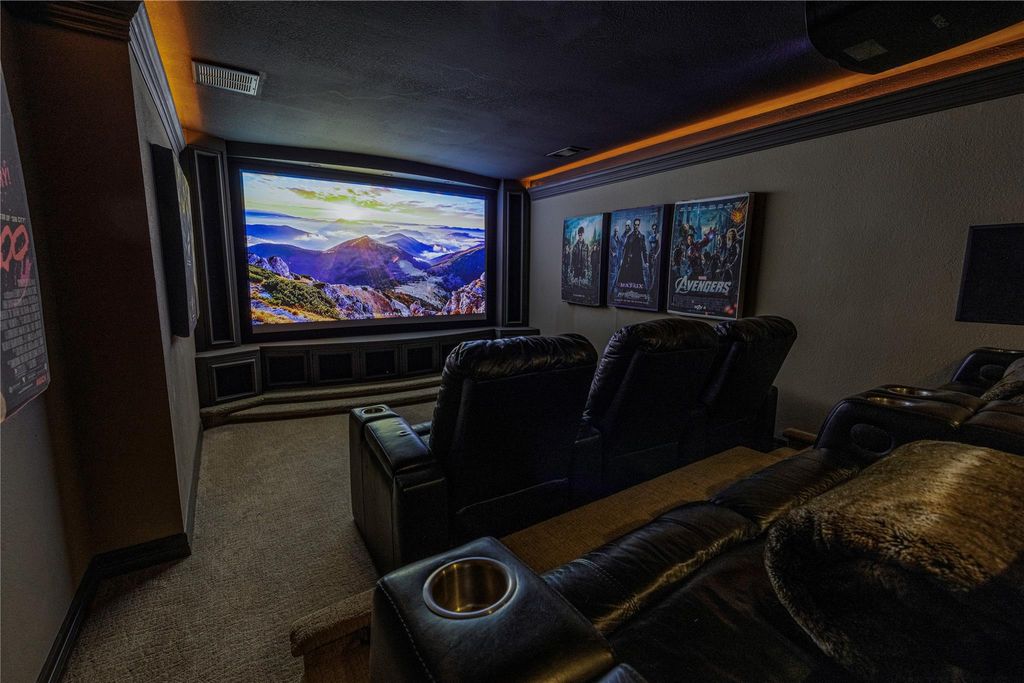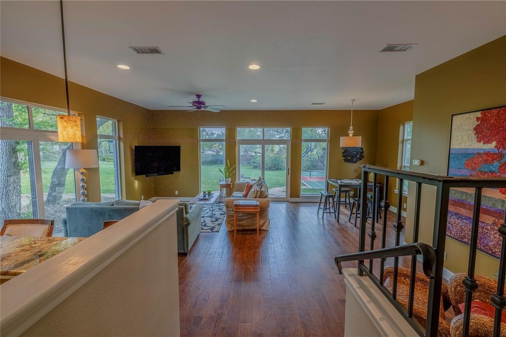 Where memories are made and space becomes sanctuary. On a nearly 1-acre cul-de-sac in Anderson Mill Estates, this 3,832-sq-ft 4-bed/3-bath home is built for connection and fun. Sunlit living flows to a spacious kitchen/dining; the den adds a wet bar and lounge. A 7-seat home theater with candy/popcorn room elevates movie night. Create in the detached, HVAC-equipped studio under the oaks"”ideal for podcasting, art or private work-from-home activities. Outdoors lives like a resort: covered patio with TV and fans, fire pit, pool, and private sport court for basketball or pickleball. The upstairs office enjoys tree-top views and a private patio over the pool. Recent upgrades include two new A/C units, new carpeting, and a 530-gallon rain-collection system for eco-minded water use.
