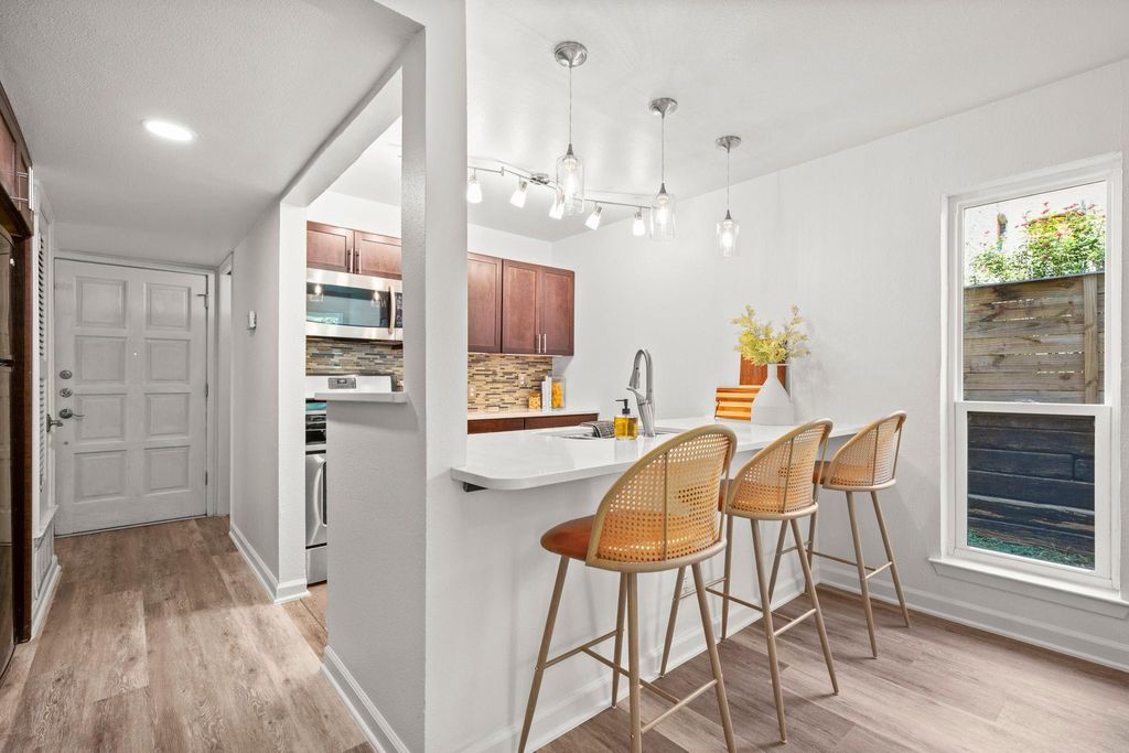 Looking for a hassle-free lock-and-leave lifestyle with everything you need at your fingertips? This condo is your ticket to easy living. With everything from updated floors, lighting and stainless steel appliances to a large, flexible living area that can be both a living room and dining space, it checks all the boxes. Per HOA Docs no minimum leasing restrictions. Would work for short or long term renting! The kitchen offers an easy-to-use space with stainless steel appliances, plenty of counter space, a breakfast bar, and updated corian countertops. It's perfect for preparing anything from quick meals to your favorite home-cooked dishes. With ample cabinetry, there's room for all your kitchen essentials. Upstairs, you'll find two spacious bedrooms, each offering plenty of room to stretch out. The 1.5 bathrooms are well-appointed, featuring modern finishes and designed for comfort. Extra closets and storage throughout the condo ensure you'll never have to worry about where to put things. When it's time to unwind, step outside and find yourself across from the community pool, a great spot to cool off or simply relax. The location is prime, offering easy access to everything, shopping, dining, and entertainment, all while enjoying a peaceful and low-maintenance environment. This condo is also on the UT bus line, making commuting to campus a breeze. This condo isn't just a home, it's a lock-and-leave lifestyle that allows you to live simply, comfortably, and stress-free. Ready for immediate move-in, it's a rare find that combines updated design, convenience, and location in one.