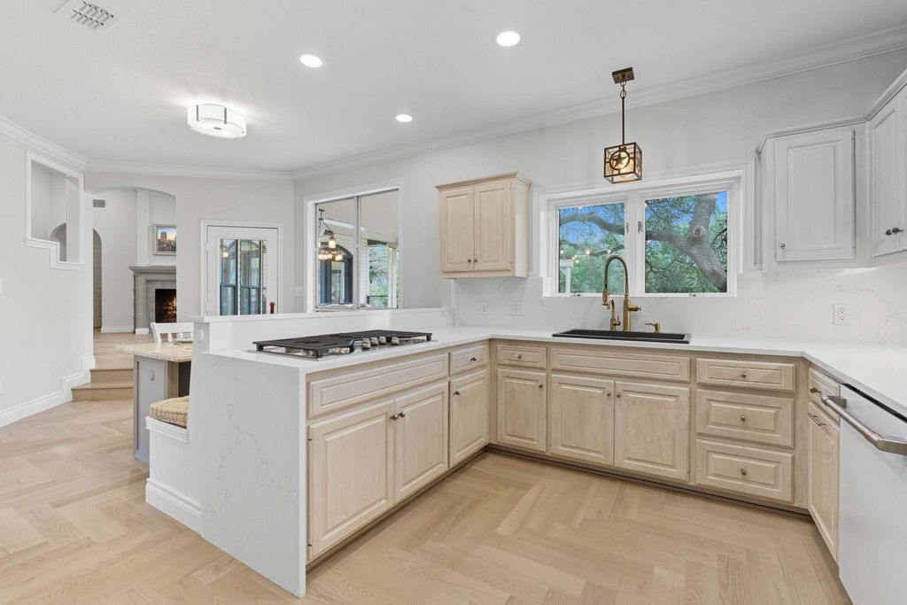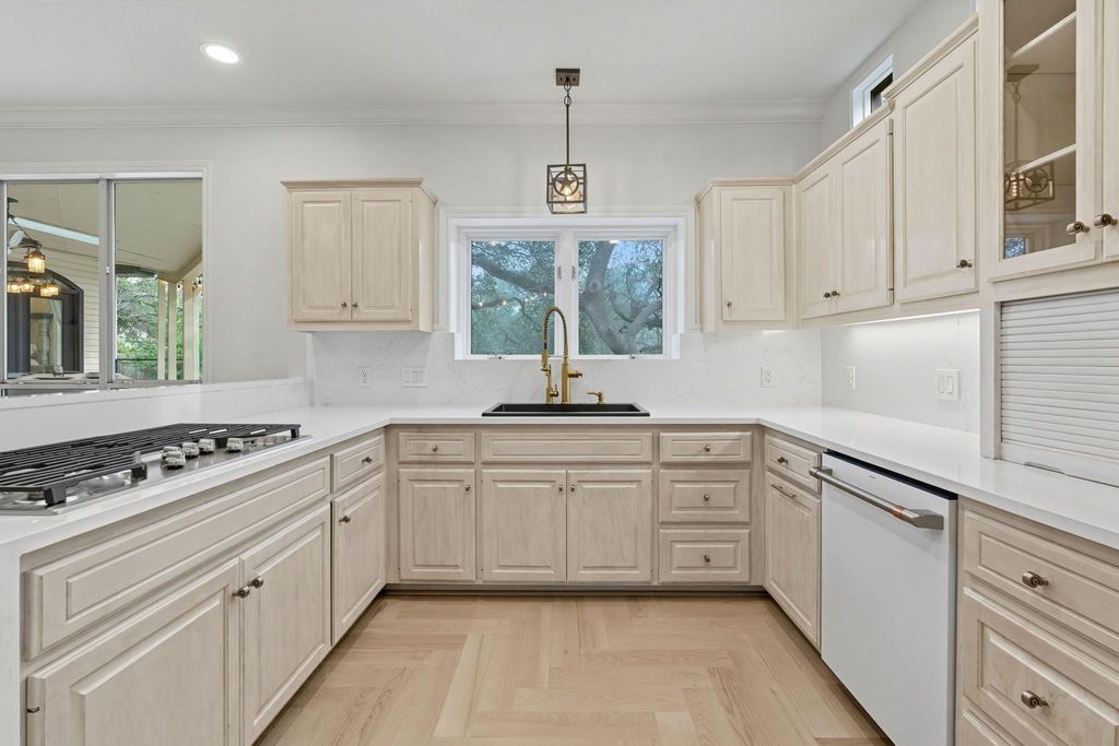 Discover lakeside serenity at 7315 Oak Shores, a beautifully remodeled home with over $200K in updates in 2025. The flexible floor plan offers 3 bedrooms plus a large dedicated office that can convert to a 4th bedroom. Features include herringbone wood floors, a resort-style primary bath with African marble and Kohler finishes, custom office built-ins, new energy-efficient appliances, new gas fireplace, and two tankless water heaters. Recent upgrades include an ultra-efficient HVAC, crown moulding, archways, and built-in Sonos audio. The professionally landscaped flat lot provides privacy, room for a pool, and an expansive entertaining deck. The oversized climate-controlled 3-car garage with epoxy floors, bath, and taller bay can serve as a guest house, gym, workshop, or boat storage. Enjoy trails, walk to Ski Shores Cafe, and easy access to boating. Just 25 minutes to downtown Austin, this home blends luxury, privacy, and active Lake Austin living.