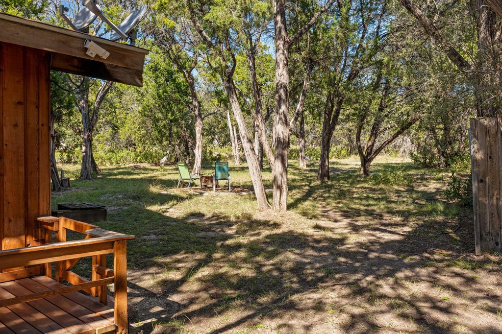 NEIGHBORHOOD: This is a property nestled in a neighborhood packed with amenities which includes, a top ranked 9 hole golf course, multiple restaurants, bars, pickleball, tennis courts, a sandy beach that appears when lake levels drop (currently they're high), access to the deepest water of lake travis (which is the best buffer against water scarcity), multiple boat launch locations (even when water is low), a library, a community gym, putting green, driving range, a pool, a park with trails, trees and frisbee golf, Plus golf carts are street legal! PROPERTY: This is a property that may be considered three levels, on the first level lies the living room, dining area, kitchen, 2 bedrooms that share a bathroom, a 2 car carport and 2 different garages with their own door. One garage side is climate controlled with central heat and ac. Owner has made another bedroom out of it before. On the 2nd floor, there is a loft that overlooks the living room and dining room and can look outside onto the street with the big windows that shine and let in huge amount of natural sunlight into the main living areas. If you go up one more floor, there is a second living room and another bedroom, full bathroom and balcony that is big enough to walk around and have a garden in (owner has done this before). This balcony overlooks the neighborhood, the thick trees and if you stand on a step, you can see a sliver of the shiny lake. LAND: The Front yard has enough space to park *many* vehicles, boats, jetskis, etc, in it. Same goes for the back yard. Boats, jetskis, RV's, bonfires, the area has *plenty* of land to enjoy. The back entrance to your backyard is long and only *you* have access to it, giving you lots of land to enjoy. It is also attached to a vibrant green belt, which backs to the 9 Tee. CONDITION: This home is structurally in good condition and is solid but it will need updates!