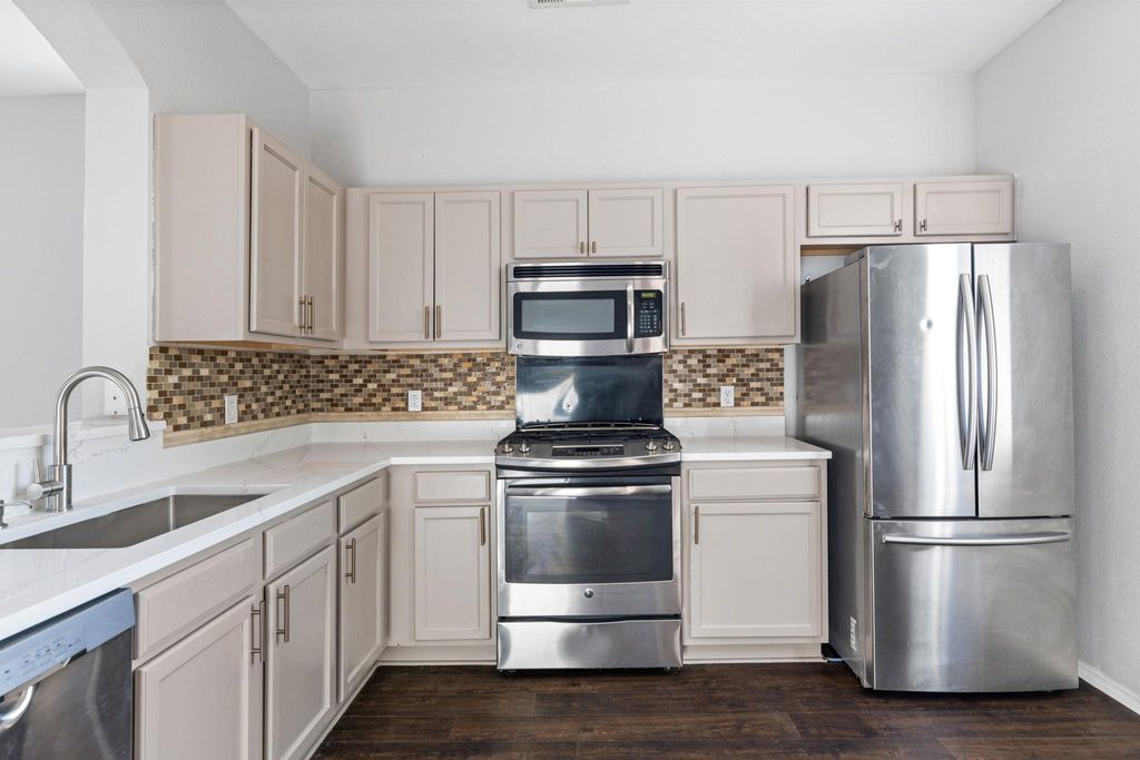 Beautifully maintained 2-story townhome featuring 3 bedrooms and 2.5 bathrooms. This home has been tastefully updated with brand-new flooring throughout and elegant quartz countertops in the kitchen and all bathrooms, providing a modern and polished look. The main level offers an open-concept living and dining area, ideal for entertaining, along with a bright kitchen that includes ample cabinet space and updated finishes. All bedrooms are located upstairs for privacy, including a spacious primary suite with a walk-in closet and private bath.