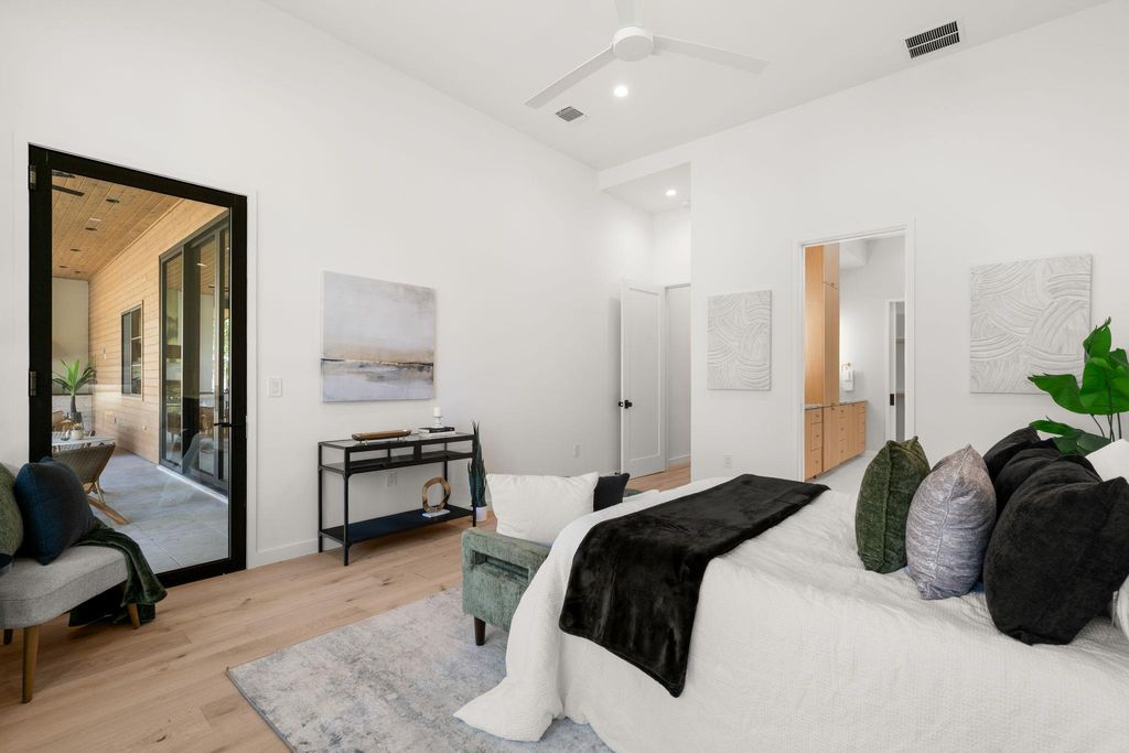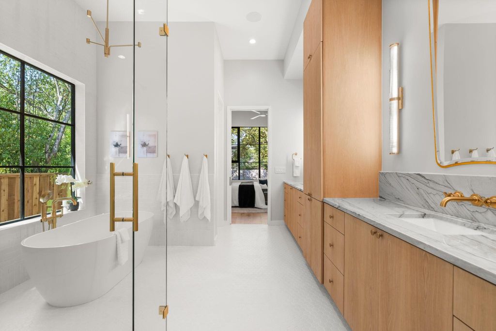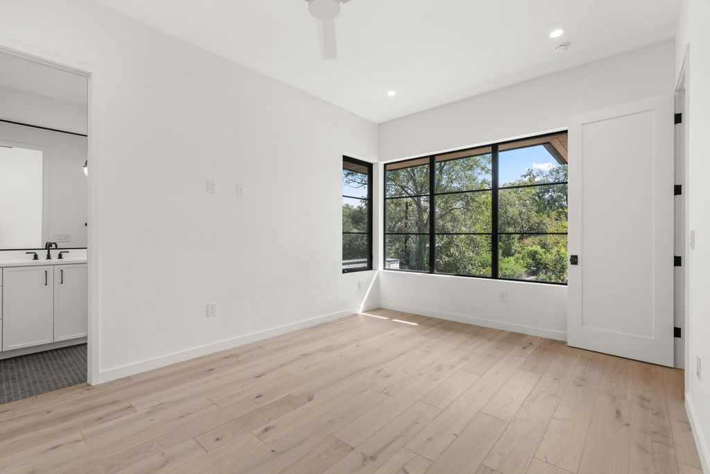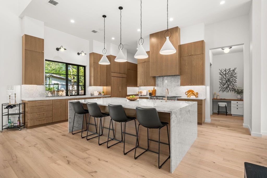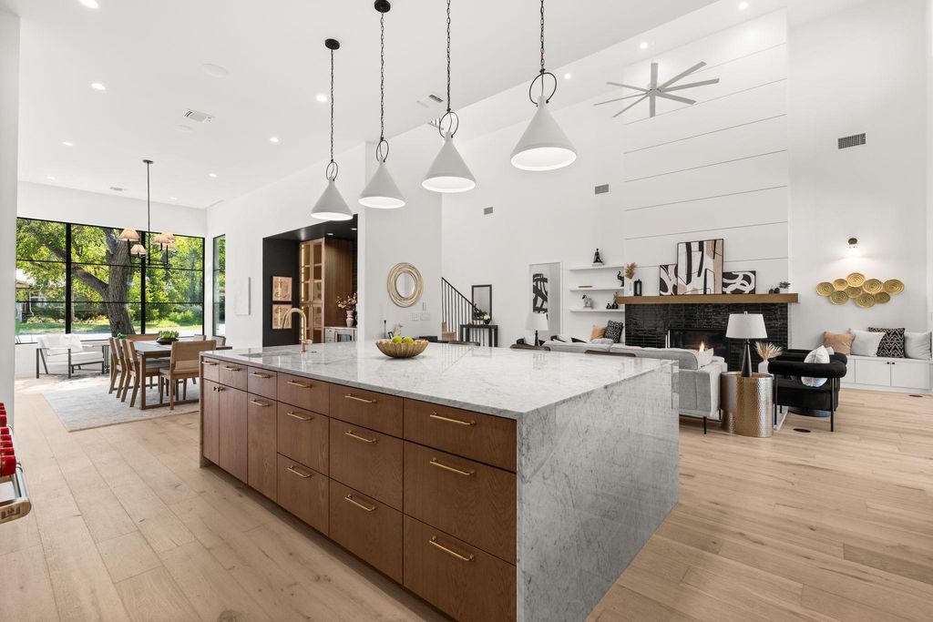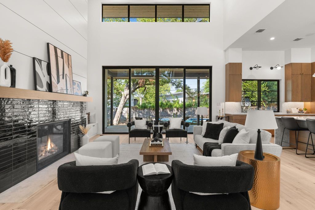 This brand-new construction home is a masterpiece of modern design, offering 5 bedrooms and 5 full bathrooms across a thoughtfully designed layout. Step through the custom 10' white oak front door into a dramatic main living space, where soaring 20+ foot ceilings and oversized Ram steel sliders set the stage for seamless indoor-outdoor living. Beyond the glass, a sparkling pool, expansive covered patio, and custom outdoor gas fire pit create the ultimate backyard retreat for entertaining or unwinding in style. The chef's kitchen is a statement of elegance and performance, featuring striking marble countertops, a Wolf/Sub-Zero custom panel appliance package, and a spacious butler's pantry complete with a second dishwasher. A custom dry bar built into the dining area adds sophistication to every gathering. The home's five bedrooms are designed with flexibility in mind, including a convenient secondary bedroom on the main floor. Also on the main floor, the spa-like primary suite offers a true retreat with a soaking tub and calming finishes, including access to the covered patio. Throughout the home, thoughtful design abounds"”from rich tones of green and blue woven into the interiors, to hidden storage under the stairs, to a custom entry drop zone that marries beauty with function. A three-car garage with an added storage room ensures space for every need, while details like the oversized front entry and curated finishes highlight the craftsmanship at every turn. This home blends bold design with livability"”an unforgettable new build in one of Austin's most desirable neighborhoods.