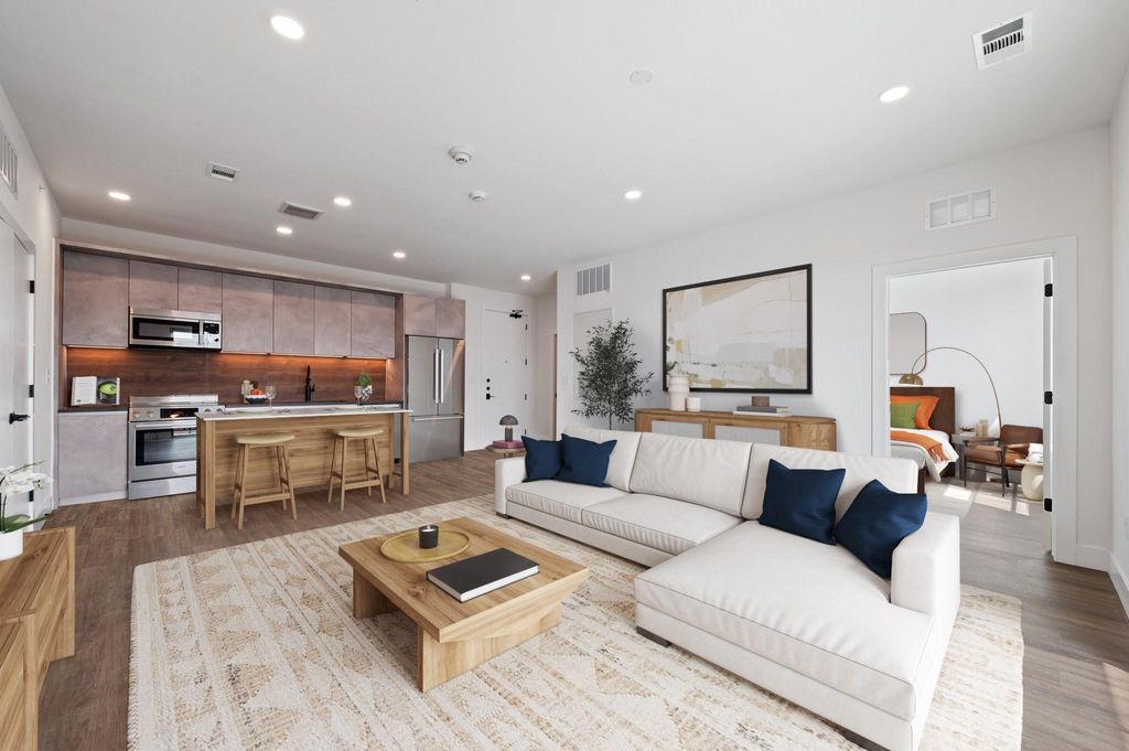 Embrace a seamless indoor-outdoor lifestyle in this stunning 2BD/2BA loft featuring an expansive terrace at Congress Lofts in the St. Elmo Arts District. This home delivers a contemporary take on classic warehouse styling with 9'5" ceilings, expansive 8x8 Quaker windows and LVT floors throughout. The spacious open layout begins with a large living/dining room flanked by a sleek stainless-steel kitchen with Italian cabinetry by Italkraft, Quartz countertops and Bosch appliances. The primary suite boasts a walk-in closet and en suite bath. A second bedroom, guest bath and laundry closet complete the thoughtful floor plan and and an oversized terrace perfect for entertaining. Congress Lofts is a new pet-friendly enclave offering a gallery lobby, library lounge, parking garage, bike storage, dog park, dog wash, and a beautiful interior courtyard with a luxurious pool, outdoor kitchen, fire pit and trellis garden. Nestled in the burgeoning St. Elmo Arts District, just minutes from great dining, nightlife, recreation and tech/creative hubs with South Lamar, Downtown, Zilker Park and Ladybird Lake all within easy reach. The iconic Austin half-grocer, half-convenience store Quickie Pickie will be located on our main level retail space offering outdoor seating featuring fresh food, wine, beer and a coffee bar!