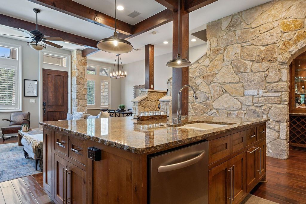 Nestled in the coveted Barton Hills enclave, this stunning custom-built condo stands as 1 of 2 units in a desirable 1/2 Duplex configuration, boasting a private 2-car garage for added convenience & security. Elevated by luxurious upgrades throughout, this home epitomizes modern comfort & style. The gourmet kitchen features a Thermador cooktop, complemented by wine cellar & custom cabinets, while a captivating interior showcases rock & wood stairway accents. Enjoy immersive entertainment experiences w/surround sound systems in the living, kitchen, dining areas, & main bedroom. Recent renovations include fresh paint, new carpeting & 2 new HVAC systems, ensuring a turnkey living experience. Retreat to the expansive main bedroom, offering a serene sanctuary w/a luxurious bathroom featuring a walk-in shower, soaking tub, & walk-in closet, complete w/surround sound. Step out to a quaint terrace, perfect for morning coffee or evening relaxation. Two guest rooms, each adorned w/high ceilings & ceiling fans, offer comfort & privacy, w/one boasting an en suite bathroom. The heart of the home lies in the beautiful kitchen, seamlessly flowing into the living & dining areas, ideal for entertaining. A large granite island serves as the focal point, overlooking the family room adorned w/a commanding stone fireplace. Outside, discover 2 outdoor spaces including a private yard & courtyard, providing the perfect backdrop for entertaining guests or enjoying family time. W/its child and dog-friendly ambiance, this oasis offers endless opportunities for outdoor enjoyment. Benefitting from a prime location, residents are mere minutes from Austin's most iconic hotspots, including Barton Springs, Zilker Park, Lady Bird Lake, & a plethora of world-class dining, shopping, hiking, & biking destinations. Top-rated schools such as Barton Hills Elementary, O Henry Middle, & Austin High School are also just moments away, ensuring a well-rounded lifestyle for all.