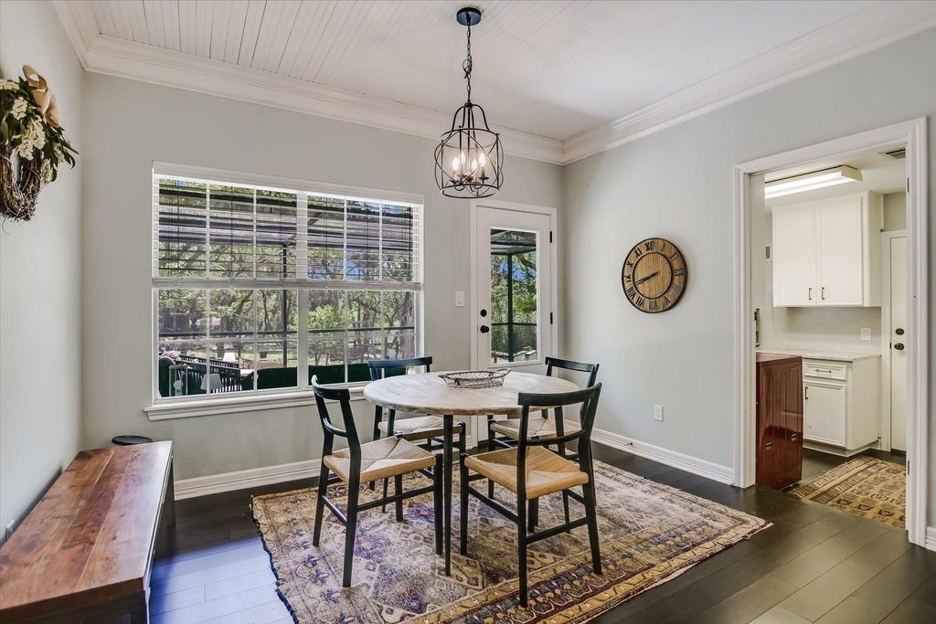 An Urban Farmhouse Oasis with no HOA and plenty of space to move about in incredible privacy and serenity. This is a beautifully remodeled home just off of 620 and zoned to Grandview Hills, Four Points, and Vandegrift. Kitchen is a chef's dream with updated white cabinets, Porto Alegre Soapstone counters, Frigidaire Professional Appliances, recessed lighting, and Burnt Umber Bamboo Engineered wood flooring. The master downstairs is perfectly private, with views of only nature and wildlife, featuring a bathroom with 12 x 24 tile and is upgraded with an thoughtfully planned oversize shower and Shadow Storm granite counters and shower seat. So much planning has gone into the remodel, and the details are obvious throughout. Second floor features bathroom with double granite vanity, under window seat storage in hall, and two sizeable bedrooms. The formal dining has been converted to an office filled with windows overlooking the property, yet the breakfast room has ample space for a large table overlooking the screened in deck and raised planting beds that are fenced for small pets. The sunroom/studio is clad in shiplap and ready for any project or simply a reading room (or a summer home for a college student). The garage is covered in pegboard for tool storage, has an epoxy floor, and the property has a water conditioner, failsafe on the well cistern, Rachio smart sprinkler, and sheds on property. This is a must see property!! Location, Schools, No HOA and a super low tax rate!