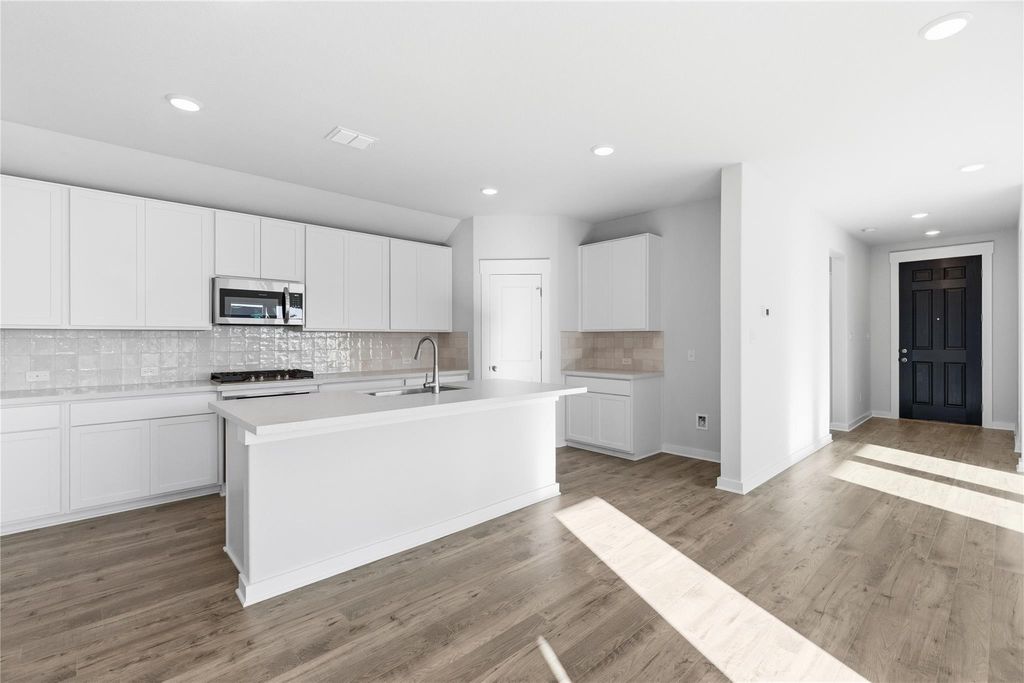 The only premium builder with the lowest tax rate in Elgin. Beautiful Corner Lot Home in Creeks Crossing - Ready Now! Welcome home to Creeks Crossing in Elgin, where thoughtful design meets everyday comfort. This single-story home sits on a desirable corner lot and features modern finishes throughout. The open-concept layout seamlessly connects the kitchen, dining, and family areas"”ideal for entertaining or relaxing with loved ones. A dedicated tech space offers the perfect spot for a home office, study area, or creative nook. The owner's suite is a peaceful retreat, complete with dual sinks in the private bath for added convenience. The kitchen features stainless steel appliances, sleek cabinetry, and plenty of countertop space for meal prep and gatherings. Enjoy outdoor living on the covered patio, complete with a gas drop for grilling and a pre-plumbed water softener loop for future ease. Experience the perfect combination of style, functionality, and location in Elgin's sought-after Creeks Crossing community"”close to schools, parks, and major highways for easy access to Austin. Don't miss your opportunity to own this beautiful home on a corner lot"”schedule your private tour today and make it yours before it's gone!