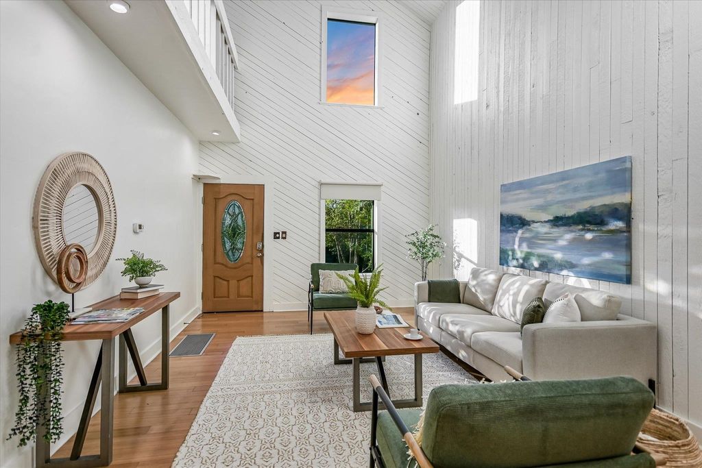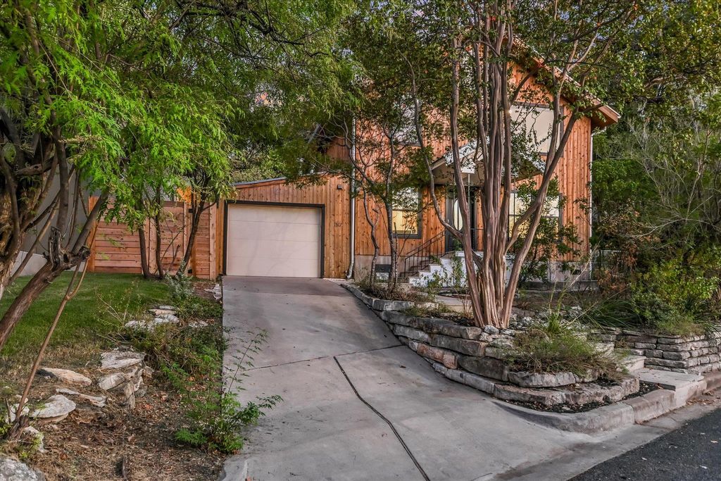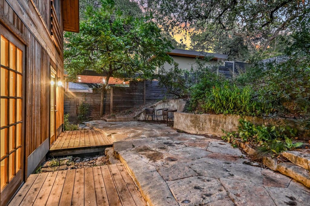 A Rare Nature Retreat in the Heart of Travis Heights: Step into your own Colorado-style lodge nestled among the towering trees of one of Austin's most beloved neighborhoods. Perfectly situated across from Blunn Creek Greenbelt and Little Stacy Park, this remarkable mid-century modern home offers the serenity of nature with the convenience of city living. Once owned by a world-renowned naturalist, the home radiates warmth, character and blends with its environment. Inside, you'll find soaring ceilings, a remodeled contemporary kitchen, and natural light pouring through expansive windows. The terraced backyard is a peaceful escape with a koi pond, fountain, and lush greenery, plus the bonus of alley access. Upstairs, a tranquil sitting area or office captures treetop views through a dramatic picture window, while the spacious primary suite invites relaxation with its cozy fireplace and treehouse feel. If you've ever dreamed of living in the country"”right in the heart of the city, this one-of-a-kind Travis Heights retreat is calling you home.