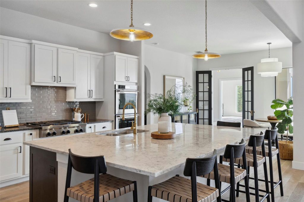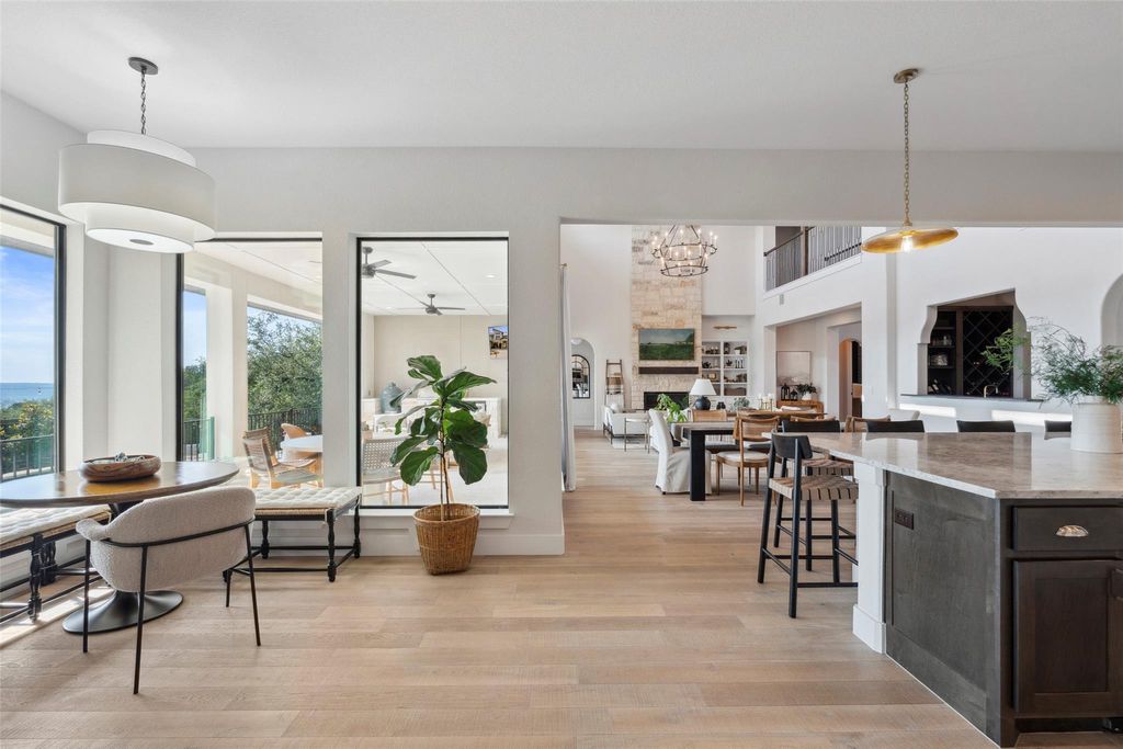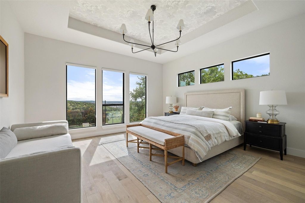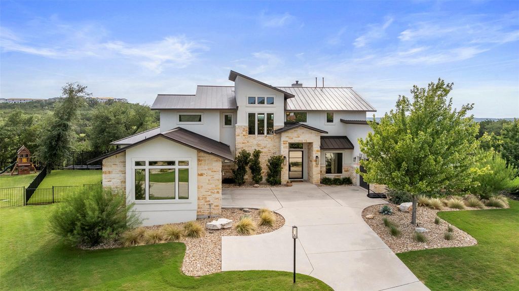 Welcome to 204 Ringtail Stream Drive, located in the heart of Serene Hills, which has had over $150,000 in upgrades. Nestled in a cul-de-sac, where luxury and entertainment intersect, to deliver extraordinary, this home provides you everything you are looking for. Situated on just over a half acre lot, this hill country modern two-story floor plan boasts 4793 square feet offering 5 bedrooms, 4 full bathrooms and 1 half bath, separate office, a custom wine bar, billiard area, and a main level game room. An entertainer's delight in every aspect. Create indoor/outdoor living by opening sliding glass doors to the spacious covered patio with built-in kitchen and admire the finest sunsets hill country living has to offer. The private backyard is an oasis in itself showcasing a grand sparkling pool and spa, expansive covered patio for plenty of guests, and gas fire-pit for relaxing. An enormous fully turfed side yard offers an area of play and further entertainment. The open floor plan provides for an abundance of natural light. The gourmet kitchen is a chef's delight featuring an oversized marble center island, double ovens, 6-burner gas range and shaker style cabinets. The laundry room will make your chores a pleasure with its stone counter island and abundance of storage. Stroll into the spacious primary suite with huge windows to overlook the stunning panoramic landscape of Texas hill country. Direct backyard access to miles of hike and bike trails. This magnificent property offers sprawling living areas, soaring ceilings, breathtaking views and luxury at its finest.
