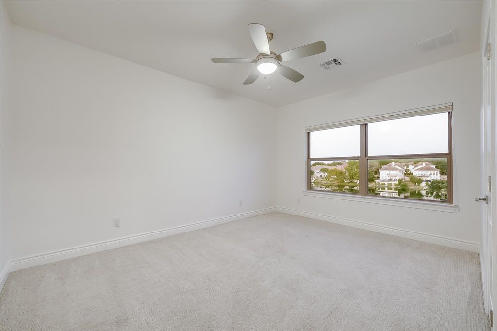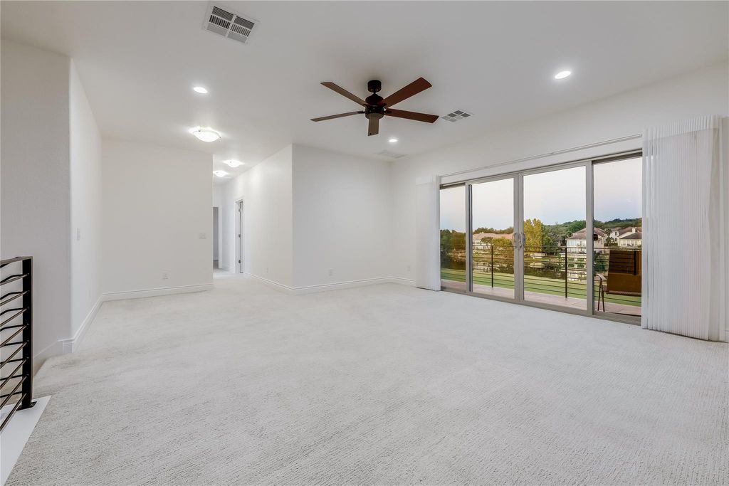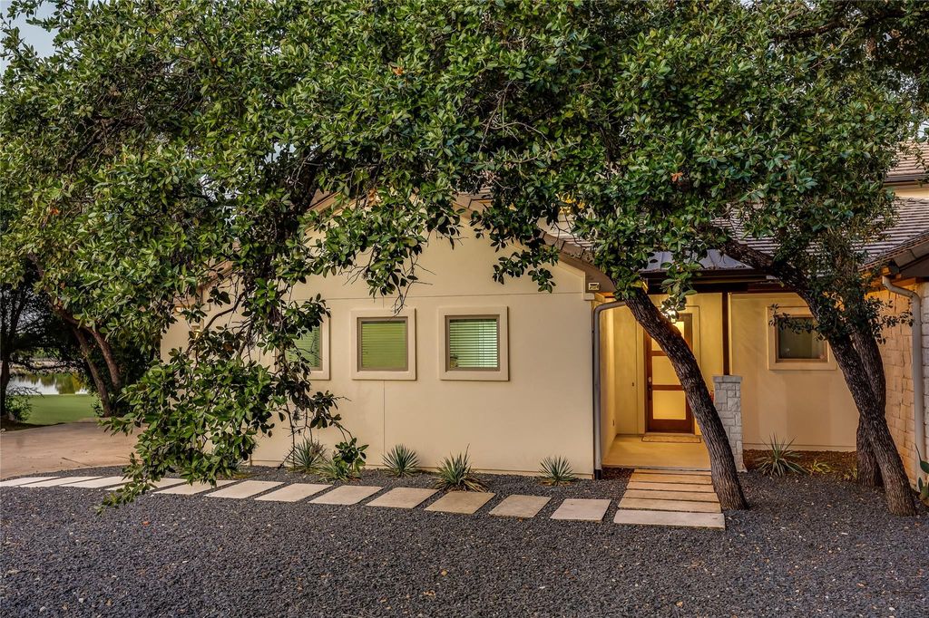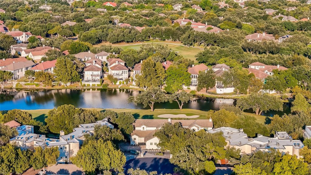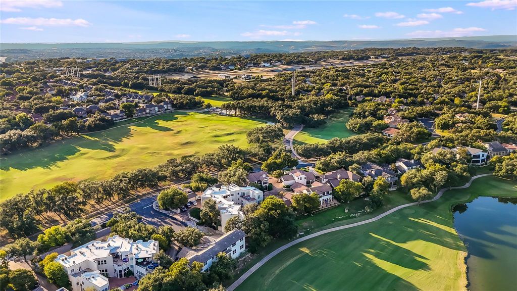 Welcome to 5 Crystal Springs Court, Unit A, in the desirable gated Hills of Lakeway community, home to the prestigious Jack Nicklaus-designed golf course and the award-winning Lake Travis ISD. Built in 2016, this 2,504 sq. ft. lock-and-leave residence offers a 2-car attached garage, minimal yard maintenance, serene pond and fairway views, and an unmatched country club lifestyle. With only one shared wall, it lives like a single-family home and is just a 2-minute walk to The Hills clubhouse. The open layout features engineered hardwood floors throughout, with the chefs kitchen flowing seamlessly into the dining and living areas. Expansive windows and two levels of decks capture 180-degree views of the 18th fairway. The primary suite on the main level includes a walk-in shower, built-in storage, and a generous sized walk-in primary closet. Upstairs, a second living area/game room/flex space, two additional bedrooms, and a full bath provide flexible living space with panoramic views of the golf course. Residents enjoy direct access to the clubhouse and year-round amenities, including dining, pools, fitness facilities, trails, tennis courts, and pickleball courts. With its bright interiors, thoughtful storage, and easy maintenance, this home is equally perfect as a full-time residence or a golf getaway. A mandatory social membership, including dining and pool privileges, is $143 per month (please see private remarks for all HOA fees). Additional membership levels are available for fitness and golf course access. This home is an ideal retreat for discerning buyers craving a simple, yet elevated lifestyle.