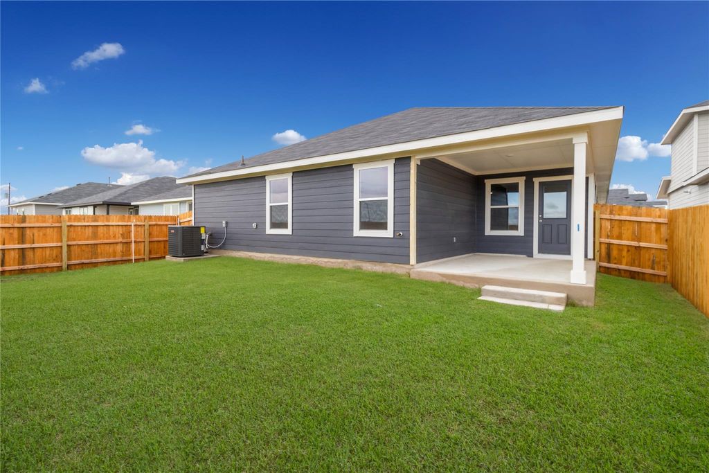 UNDER CONSTRUCTION - EST COMPLETION IN OCTOBER Photos are representative of plan and may vary as built. The Lakeway is a single-story home that offers 2,041 square feet of living space in our Monarch Ranch community located in Manor, TX. This home is the perfect for any family, featuring a two-car garage, four bedrooms, three bathrooms and a study. As you enter the home you will find yourself in a foyer that opens to a spare bedroom, a bathroom and a large study with an extra closet for storage. As you continue through the home you will walk into the spacious dining room, kitchen and open living room that leads to a covered patio. The kitchen features a large kitchen island, quartz countertops, a large pantry and stainless-steel appliances throughout. Just off the dining room is the third and fourth extra bedrooms as well as the third bathroom. At the back of the home, just off the living room, is the main bedroom, bedroom 1. This bedroom features plenty of space and natural lighting, a large ensuite with double vanity and a large walk-in closet. This home comes included with a professionally designed landscape package and a full irrigation system as well as our Home is Connected base package that offers devices such as a Video Doorbell, Deako Smart Light Switch, a Honeywell Thermostat, and more.