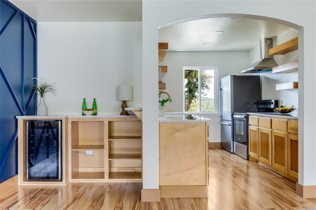Experience modern comfort and stylish design in this fully renovated 2-bedroom, 2-bath condo in the heart of Lago Vista.! Thoughtfully redesigned from top to bottom, this home showcases high-end finishes and attention to detail throughout. Step into the inviting living room, where soaring ceilings, a striking blue accent wall with ambient lighting, and a custom bar complete with a beer/wine fridge create the perfect space for entertaining. The brand-new kitchen is a showpiece, featuring stainless steel appliances, sleek cabinetry, and ample counter space. Custom solid wood doors, crafted by Texas Doors and Windows, add warmth and elegance, complemented by matching woodwork and rich wood flooring that flows seamlessly through the home. Both bathrooms have been stylishly updated, and the bedrooms offer comfort and versatility for any lifestyle. Modern recessed lighting, updated ceiling fans, and a convenient stackable washer and dryer complete the interior upgrades. Outside, enjoy resort-style living with a beautiful community pool located just steps from your front door. This move-in-ready condo combines contemporary design with everyday functionality"”an absolute must-see in Lago Vista!