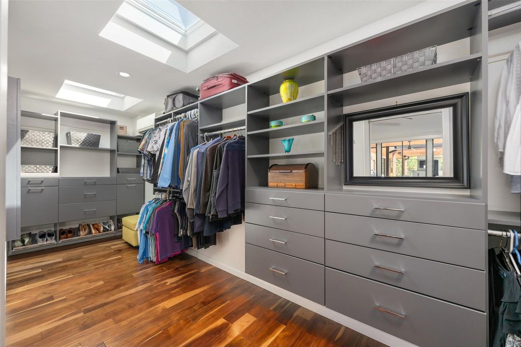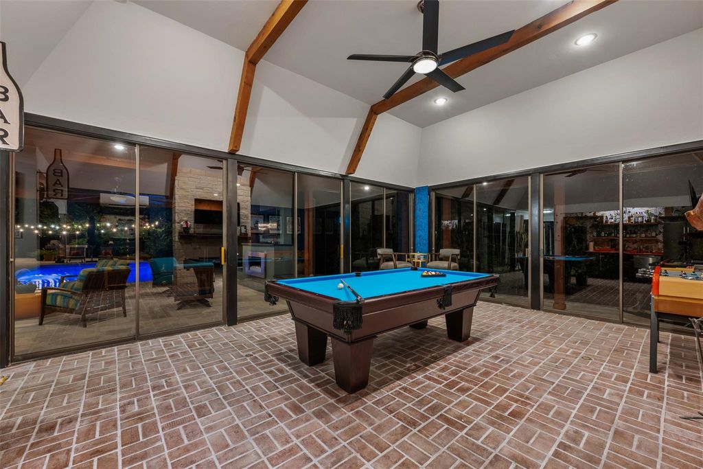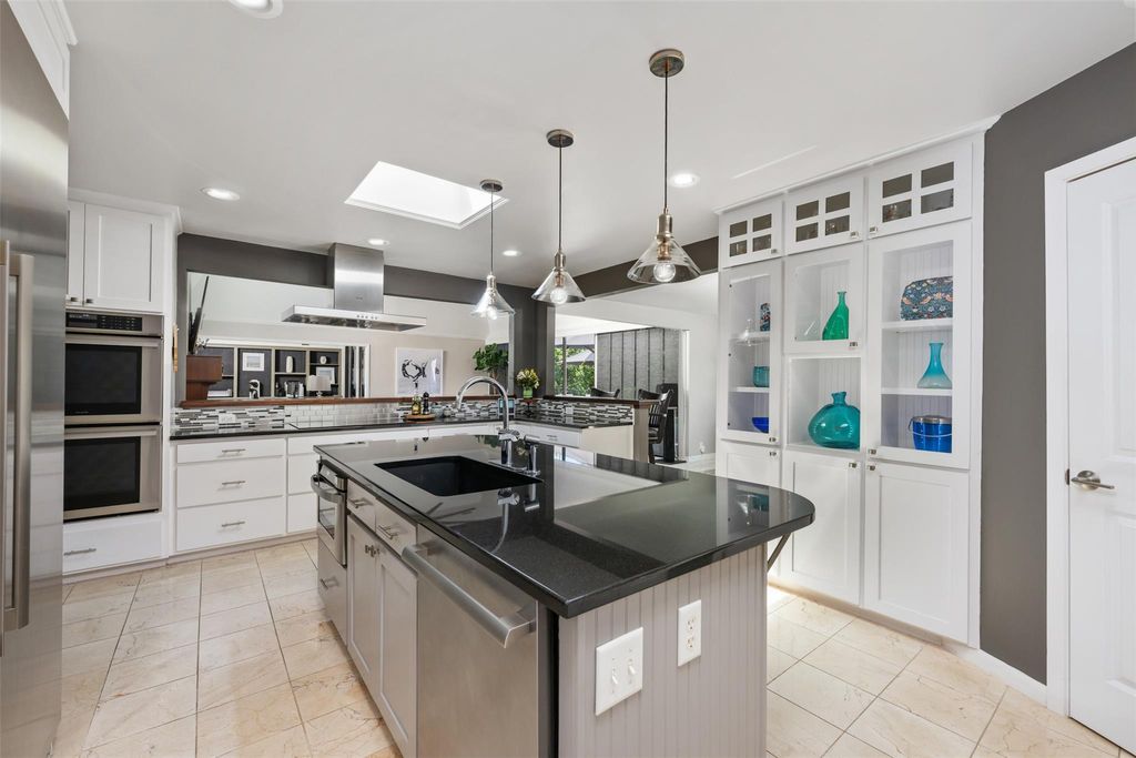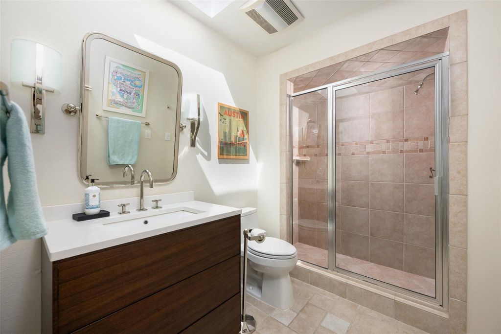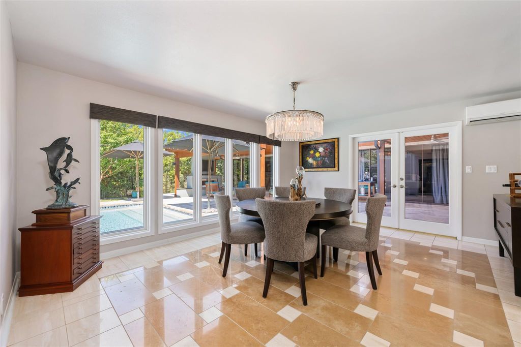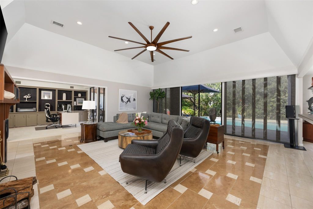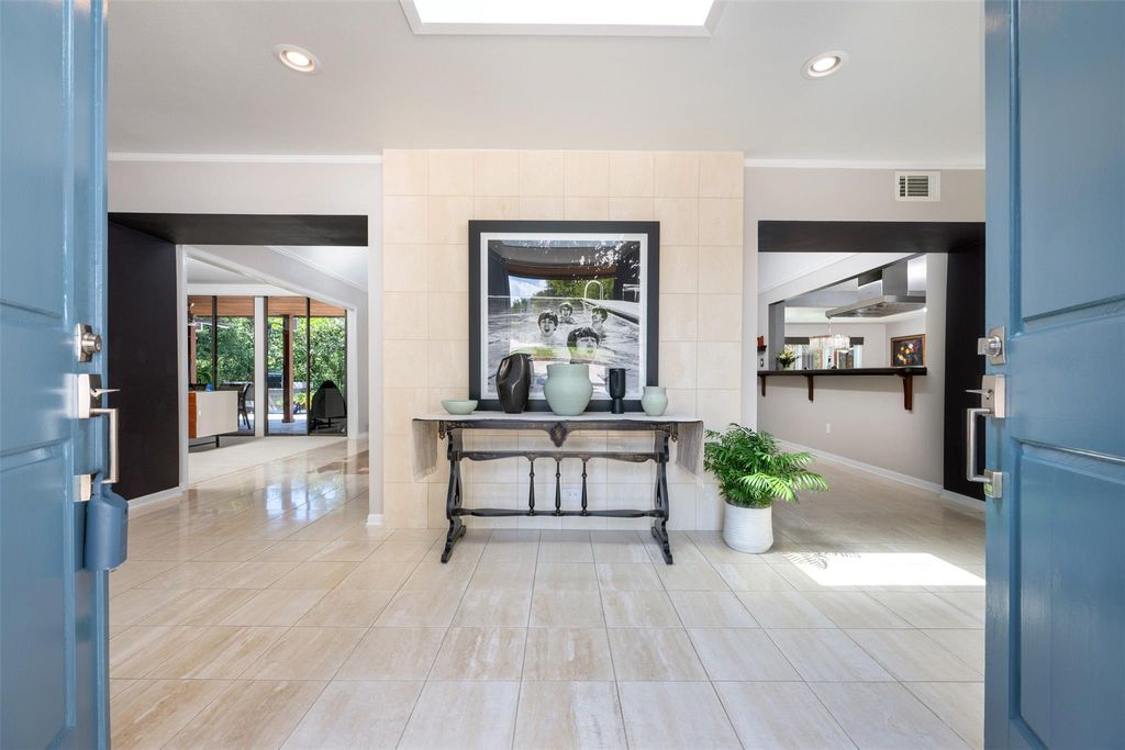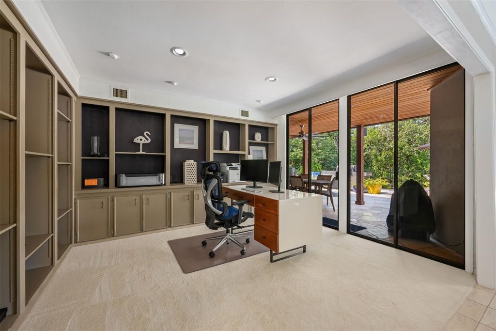 This stunning single-story home in Old Lakeway has been taken down to the studs and meticulously remodeled with luxurious finishes and timeless design. Set on a beautiful .37 acre lot with tall oaks, the home offers multiple expansive outdoor living areas and a sparkling swimming pool, creating a private oasis perfect for both relaxation and entertaining. Inside, a spacious open floor plan features high ceilings, with travertine and hardwood floors flowing throughout. The gourmet kitchen is a chef's dream"”completely remodeled with Thermador appliances, including double ovens, refrigerator, microwave drawer and dishwasher adorned by granite countertops, and custom cabinetry. Walls of glass flood the home with natural light and offer serene views of the pool and lush gardens. All windows have been replaced, electrical panels on home and casita, AC systems, pool pump and cleaner and much more. The main house includes two generous bedrooms with remodeled ensuite baths, both granting access to outdoor living with wonderful privacy, a large dedicated office or study has handsome library wall and access to pool area, a glass surround dining room, and an oversized family room with fireplace"”ideal for modern living. Step outside to the resort-style outdoor living area, featuring a fireplace and a tongue-and-groove wood ceiling treatment cover multiple living spaces perfect for year-round enjoyment. Just beyond, a private casita offers an additional full living space complete with brick flooring, a cozy fireplace, dishwasher drawer, refrigerator, wine fridge, and a spacious bedroom with lovely full bath"”ideal for guests, extended family, or a home studio. Surrounded by mature trees, vibrant flora, and rich landscaping, when the leaves fall there is a magical Lake view waiting for you. This home offers rare privacy and elegance in one of Lakeway's most sought-after neighborhoods. You will fee as though you are on vacation when you come home.