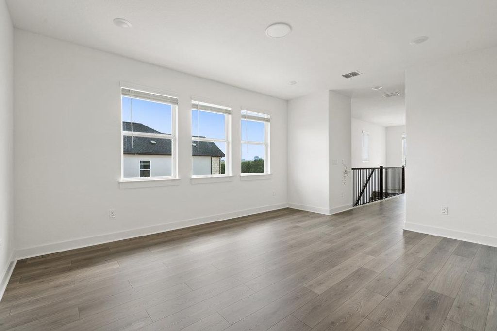 Foxfield is a tucked-away gem in North Austin that borders the 293-acre Walnut Creek Metropolitan Park, offering a peaceful setting with direct access to miles of hiking and biking trails, playgrounds, sports fields, and shaded picnic areas. Just minutes from The Domain, this thoughtfully designed neighborhood offers a rare balance of nature and city convenience. Residents enjoy easy access to top shopping, upscale dining, and local entertainment options, while being only a short drive to major employment hubs via Parmer Lane, Mopac, and I-35. Welcome to 2000 Kit Circle, a beautifully designed three-story home in the heart of Foxfield that offers 2,956 square feet of refined living space. This 4-bedroom, 3.5-bath layout features four distinct living areas: a family room and flex room on the first floor, and a spacious gameroom and dedicated media room on the second. The open-concept kitchen includes 10-foot cabinetry, quartz countertops, and a center island, all flowing into the family room for easy entertaining. Durable vinyl wood flooring extends through the first floor and select areas upstairs for a warm and low-maintenance feel. A dedicated office on the main level creates the perfect work-from-home space, while the third-floor bedroom suite with its private bath and walk-in closet offers an ideal setup for guests or multigenerational living. The luxurious primary suite features a tray ceiling, large windows, and a spa-inspired bathroom with a frameless glass walk-in shower, dual showerheads, and elegant finishes. North Austin offers the best of both convenience and recreation, with The Domain and Domain Northside just a few miles away, featuring boutique shops, high-end retailers, and restaurants like Sixty Vines, North Italia, and Blue Sushi Sake Grill. The nearby Rock Rose District delivers vibrant nightlife and local flavor, while Walnut Creek Park is right out your back door.