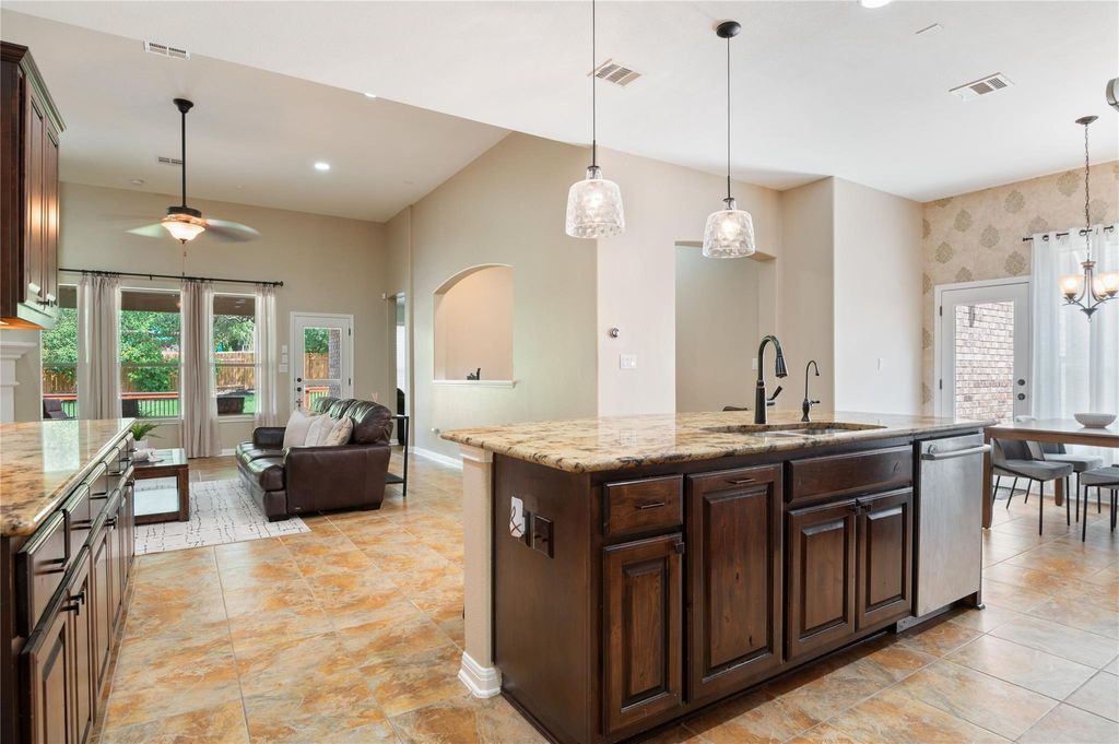 INTERIOR | Breakfast Bar, Ceiling Fan(s), Crown Molding, Double Vanity, Eat-in Kitchen, Entrance Foyer, Granite Counters, High Ceilings, High Speed Internet, Kitchen Island, Master Downstairs, Open Floorplan, Pantry, Recessed Lighting, Smart Thermostat, Walk-In Closet(s), Wired for Sound |