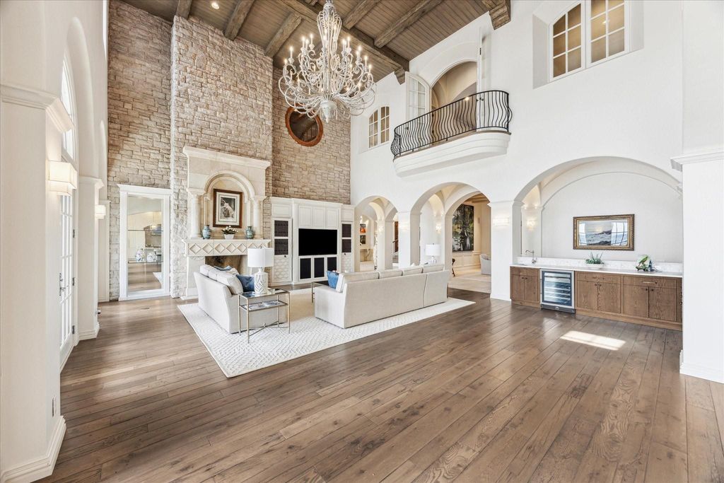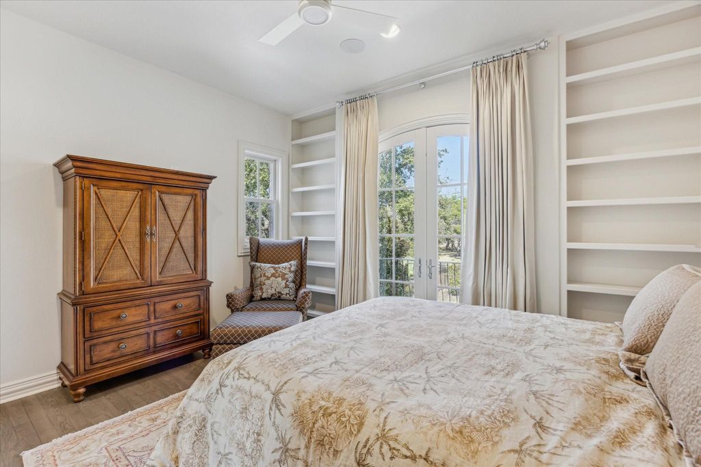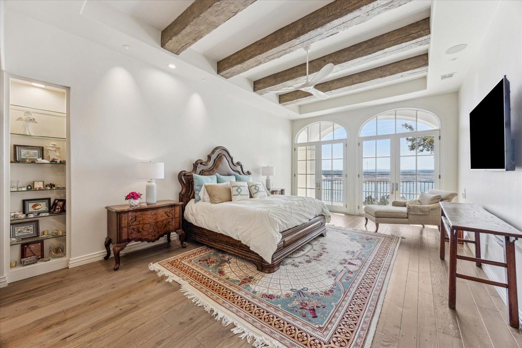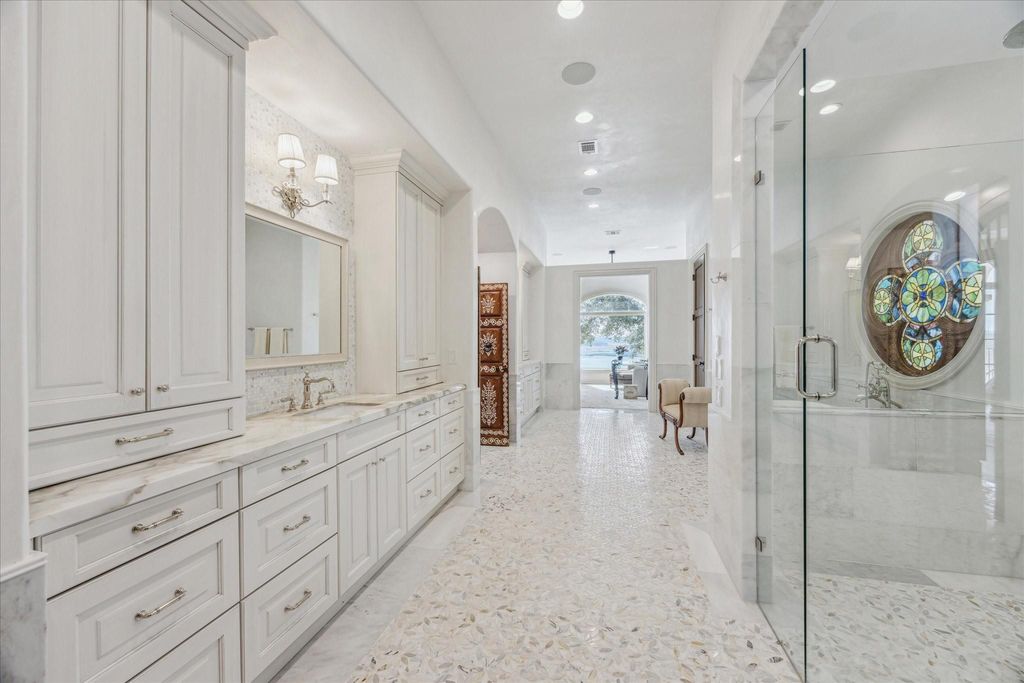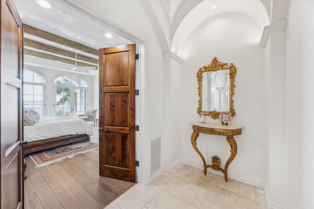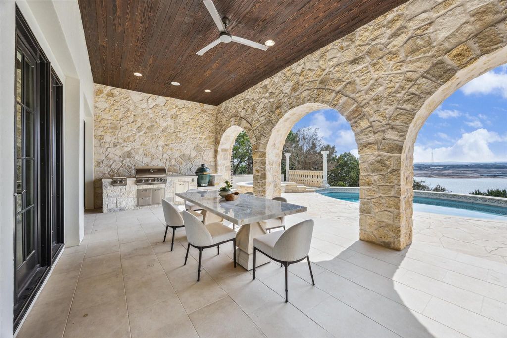 Welcome to this exquisite Northshore Lake Travis lakefront sanctuary in the gated area of The Hollows. With ~ 230' of lake frontage, this magnificent estate spans an impressive 10,792 sq ft in the main home with an additional separate guest quarters of 910 sq ft, offering an unparalleled experience on a sprawling 3.69 acre lot. This striking Santa Barbara style home was designed by the renowned Jauregui Homes, and showcases beautifully crafted high ceilings, arched details, Segreto finishes and so many intricate touches. The home, pool and spa have been extensively remodeled blending high quality, modern luxuries with Old-World style, unique European pieces and custom lighting fixtures. The hand finished reclaimed hardwood floors, gorgeous Italian imported stained glass, and solid marble Italian columns make this estate a masterful work of art. Antique wood entry doors from a European Monastery open the way to discovering an expansive layout featuring gorgeous common rooms, 6 bedrooms and 9 opulent bathrooms. The primary ensuite with a covered balcony and sweeping lake views is on the main level and is adorned with double wood doors with ivory inlaid accents, spacious spa like bathroom, retreat/yoga studio, and 3 walk in closets. The gourmet kitchen is complemented by 2 islands and multiple workstations, and is open to the massive family room with fireplace and wet bar. The appliances are top of the line, and include a Lacanche French range and dual fuel ovens. Other rooms include a lovely formal living room with fireplace, formal dining room, multiple living areas, well-appointed office, home theater, wine grotto and safe room. Enjoy the breathtaking waterfront views and lovely sunsets! The separate guest quarters include a kitchen, bedroom, full bathroom, living room and laundry facilities. The pool and spa overlook the lake, large covered patio and summer kitchen. The community offers wonderful amenities. This exceptional estate is a testament to refined living.