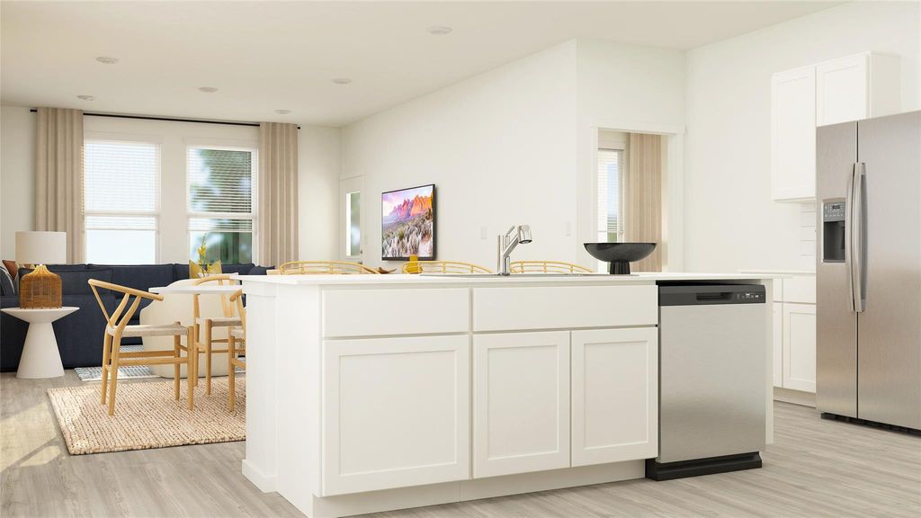 The Lucia - This new two-story home offers plenty of space to live and grow. An open-concept floorplan on the first level combines the kitchen, living and dining areas to maximize interior space, with a nearby covered patio for outdoor fun and leisure. The luxurious owner's suite is nestled into a private rear corner, complete with a spa-inspired bathroom and generous walk-in closet. A versatile loft shares the second floor with three additional bedrooms. Photos are for illustrative purposes only. Estimated Completion January 2026.