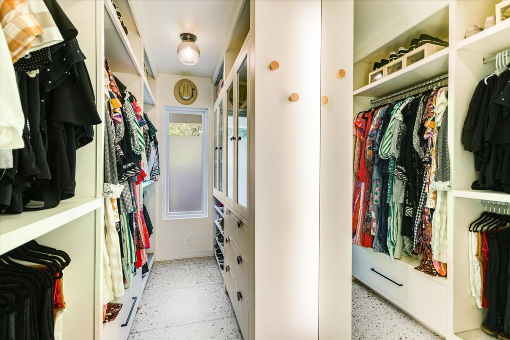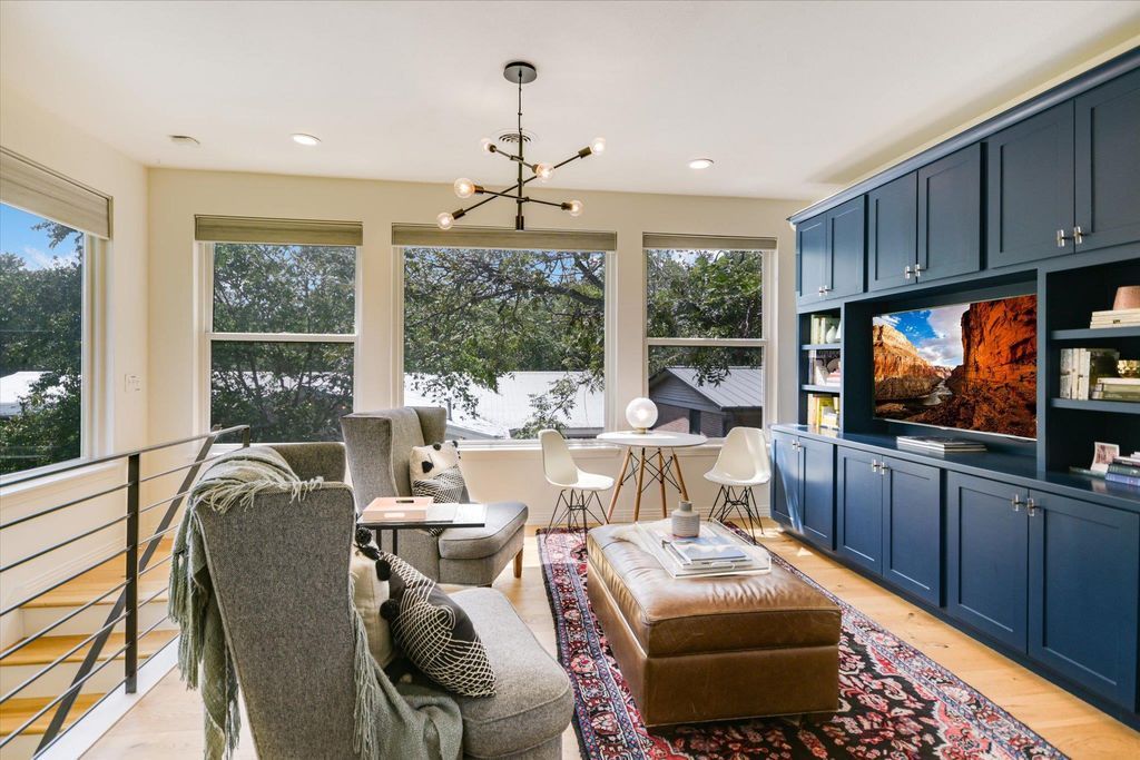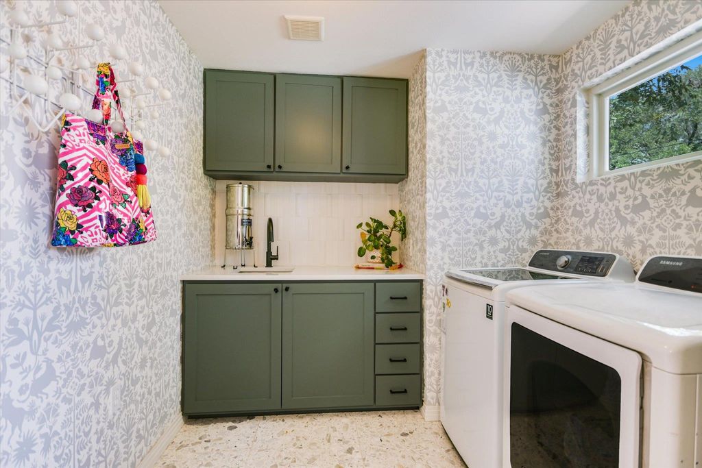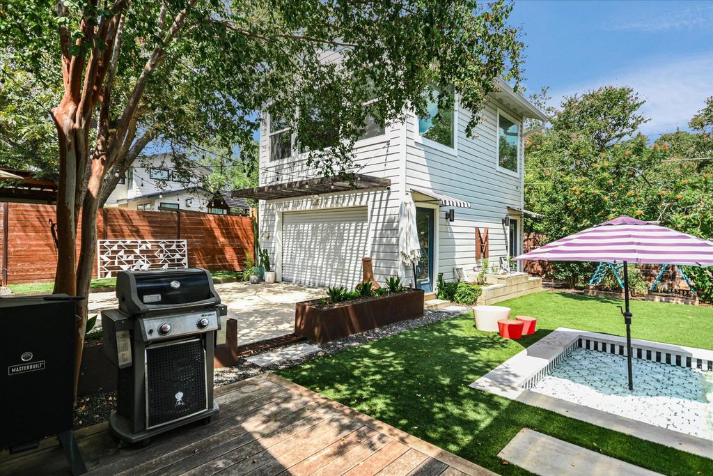 Updated with an architect's touch for timeless detail, this Windsor Park home blends its 1950s mid-century modern roots with a fresh renovation and includes an income-generating detached garage apartment. Every space has been thoughtfully reimagined, from exposed shiplap walls and original hardwood floors to marble terrazzo and white oak cabinetry paired with floor-to-ceiling millwork. The open kitchen is a showpiece with paneled Thermador appliances, built-in refrigerator, steam oven, wine fridge, and enclosed coffee bar. A laundry room with utility sink off the kitchen adds convenience. In the primary suite, a full wall of custom millwork and walk-in closet with heated floors create a beautifully organized retreat with abundant storage. The spa-like bath includes custom built-ins and a walk-in shower paired with large Anderson windows framing tree-filled views. A detached garage apartment offers a first-floor conditioned garage with storage and a stylish upstairs studio. With its own entrance, the studio delivers treehouse vibes with shiplap accents, a serene living room and bedroom overlooking the pool, and a breakfast bar kitchenette. Designed for flexibility, it's equally suited for guests or as a proven short- or long-term rental, complete with its own AC, tankless water heater, and sewer pump. The backyard is a private retreat with a heated and chilled Texas Tiny Pool featuring UV filtration, turf for easy upkeep, a covered Ipe deck with pergola, and a two-story custom playhouse. Irrigation, custom steel planters, and lockable steel gates add both function and beauty. Everyday practicality comes with a two-car carport and gated driveway. HVAC system (2022) with UV air filtration, upgraded electrical panel, and window shades complete the updates, bringing modern comfort to this architect-renovated home. Every detail reflects a balance of style and function, offering the best of modern living with architectural character just 15 minutes from Downtown Austin.