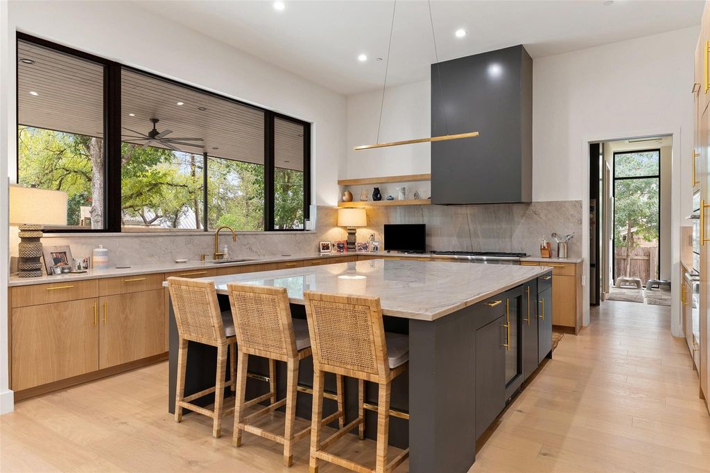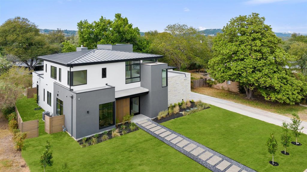 Modern luxury newer construction (2024) in Westlake's most convenient and walkable neighborhood - "Westwood". Walking/biking distance to exemplary Eanes ISD public schools and many nearby private schools, shopping, coffee shops and restaurants, yet just a 5-10 minute drive to DT Austin, Lady Bird Lake, SoCo, etc. Warm transitional style features and finishes throughout, every space has been crafted to maximize comfort, luxury, and privacy. Featuring 4600 sq. ft. with 5 bedrooms including the primary suite, guest suite + study + bar and abundant storage on the main level. 3 additional bedrooms all with en-suite baths and a den/media room upstairs and a small office/homework space with custom built-ins. Tall ceilings and great flow throughout. The oversized kitchen features custom White Oak cabinetry; Thermador professional appliances and a view to the pool, spa and backyard space. The kitchen also features an impressive large island with seating area and is connected to a functional butler pantry including extra storage and prep space, additional fridge and a 2nd dishwasher. Accessible from both the main family room and the butler pantry, the generous main level covered patio features a BBQ area; additional 2nd floor deck and 3rd floor rooftop terrace overlooking DT Austin and the city lights. Separate casita/guest house adjacent to pool includes bathroom and could be a great art, music, reading, or hobby room. Custom Audio/Visual/Security and Camera package has been installed and is included with the home. Westwood features one of Travis County's lowest tax rates at 1.46% which is lower than nearby Rollingwood and West Lake Hills and considerably lower than nearby City of Austin properties.