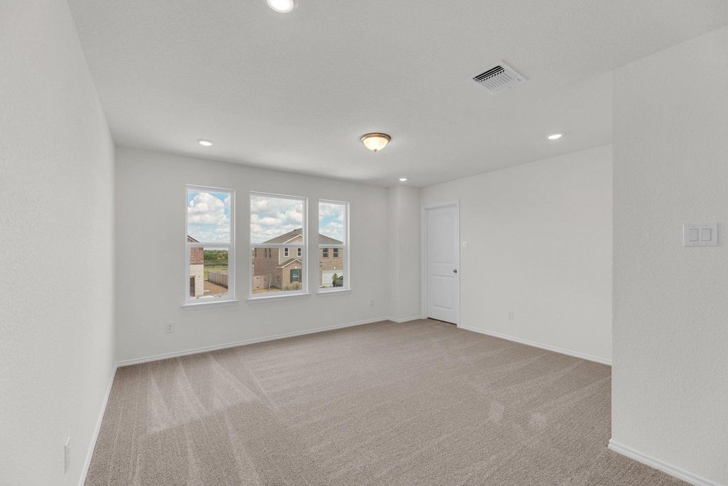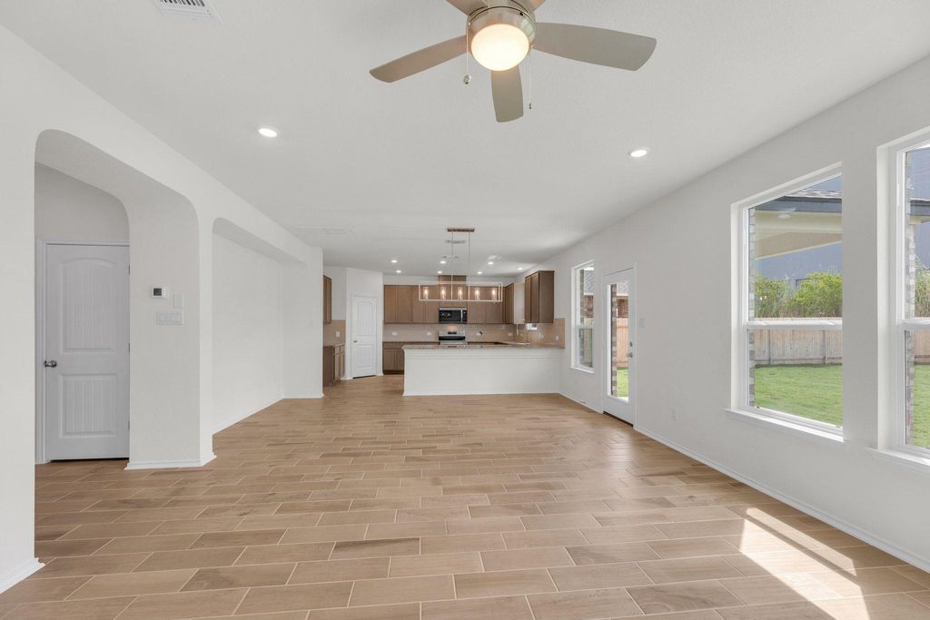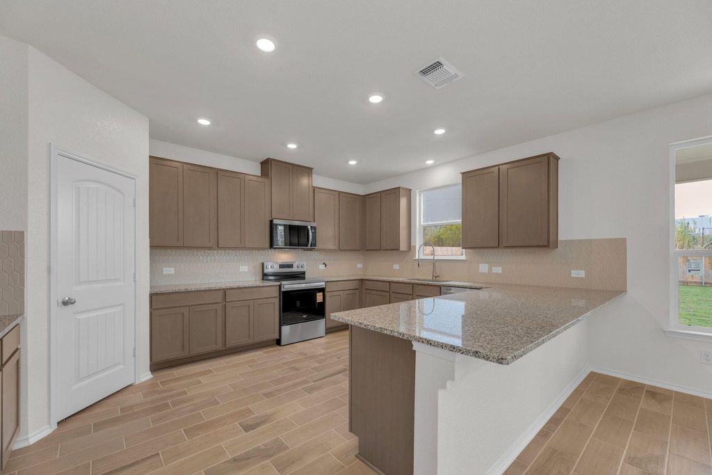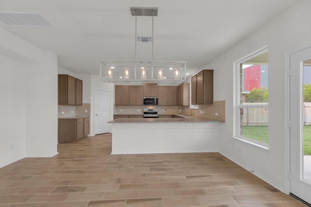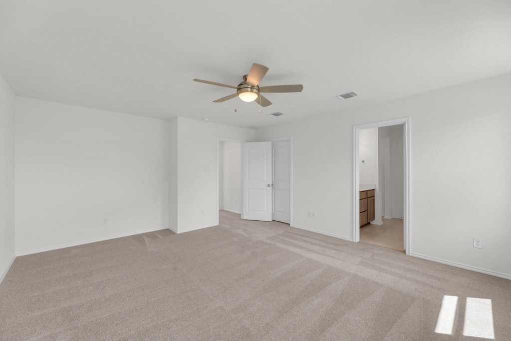 Experience the perfect blend of style and comfort in this stunning, two-story home, which showcases an open floor plan with stylish tile flooring and a spacious great room for entertaining. The kitchen boasts Shaker-style upper cabinets, sleek tile backsplash and Arctic Pearl granite countertops. Upstairs, a versatile loft awaits. The primary bedroom features plush carpeting, a convenient walk-in closet and connecting bath that offers a dual-sink vanity, Silestone countertops and luxurious walk-in shower with tile surround. Additional highlights include a smart thermostat, Sherwin-Williams interior paint, modern Moen fixtures and ceiling fans at great room and primary bedroom. Step outside to the covered back patio for outdoor relaxation.