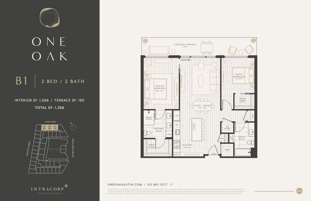 Nestled in the heart of Austin's highly sought-after Bouldin Creek neighborhood, Residence 309 at One Oak presents a rare chance to own in one of the city's most desirable luxury condominium communities. Fusing modern architecture with resort-style amenities, One Oak redefines urban living in one of Austin's most vibrant areas. This beautifully appointed 2-bedroom, 2-bath home features a light-filled open-concept layout with expansive windows and high-end finishes throughout. The chef-inspired kitchen showcases custom Italkraft cabinetry, sleek stainless steel Bosch appliances, and a generous island perfect for meal prep and entertaining. The spacious living and dining areas open onto a covered private terrace that spans both bedrooms, offering striking views of the downtown skyline and seamless indoor-outdoor living. The primary suite serves as a serene retreat, complete with a luxurious full bath featuring a dual vanity, a glass-enclosed shower, and a walk-in closet. The second bedroom offers flexibility for guests, a home office, or additional living space. Styled with One Oak's elegant Classic finish package, this residence is both move-in ready and timelessly designed. Residents enjoy access to top-tier amenities, including an infinity-edge pool with cabanas, an outdoor kitchen and smoker area, indoor and outdoor fitness spaces, multiple resident lounges, co-working areas, and a thoughtfully curated community experience. Just steps from the iconic South 1st and South Congress districts, Residence 309 at One Oak offers the perfect blend of energy, luxury, and location in the heart of Austin.