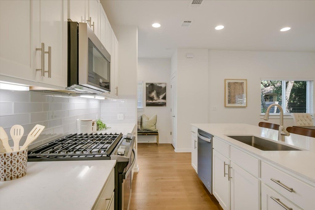 Tucked inside a private gated community, this stylish residence stands out with thoughtful upgrades and rare conveniences. The home features wood floors throughout, creating a warm and cohesive feel in every room. The primary suite is complemented by a spa-like bath with a custom built-in, offering both elegance and functionality. One of the highlights is the low-maintenance turf backyard, designed for easy outdoor living and year-round enjoyment. Unlike most homes in the community, this property also includes driveway parking in addition to the garage, a valuable benefit for both residents and guests.With its clean design, quality finishes, and rare extras, this home combines modern comfort with everyday practicality in a desirable South Austin location.