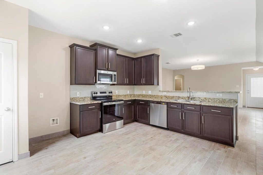 This is a Fannie Mae Property. Seller has requested all Offers be presented online at HomePath.FannieMae. Stylish Brick and Stone Combination-Nice Street Appeal. Step Inside and be greeted by an Open Floorplan that flows seamlessly throughout ~ Interior Updated Features include Plank Floors and Paint + Spacious eat-in Kitchen is a Chef's Delight and features Granite counters, Breakfast Bar, Stainless Appliances and ample Cabinets/Working space ~ Primary Suite has walk-in Closet with built in storage. This home offers the Perfect blend of Modern Amenities and Charm. The Community Pool, Scenic Park and Covered Pavillion adds a Great Option for Fun and Relaxation. Easy access to Hwy. 290, Shops, Dining make this property a Standout ~ Check It Out!