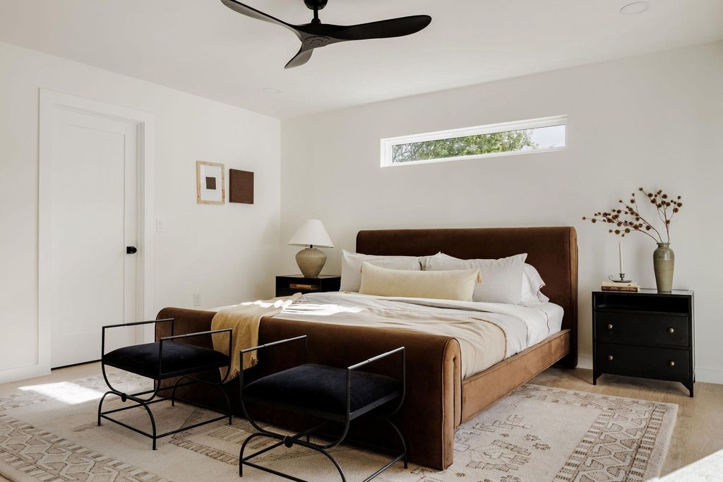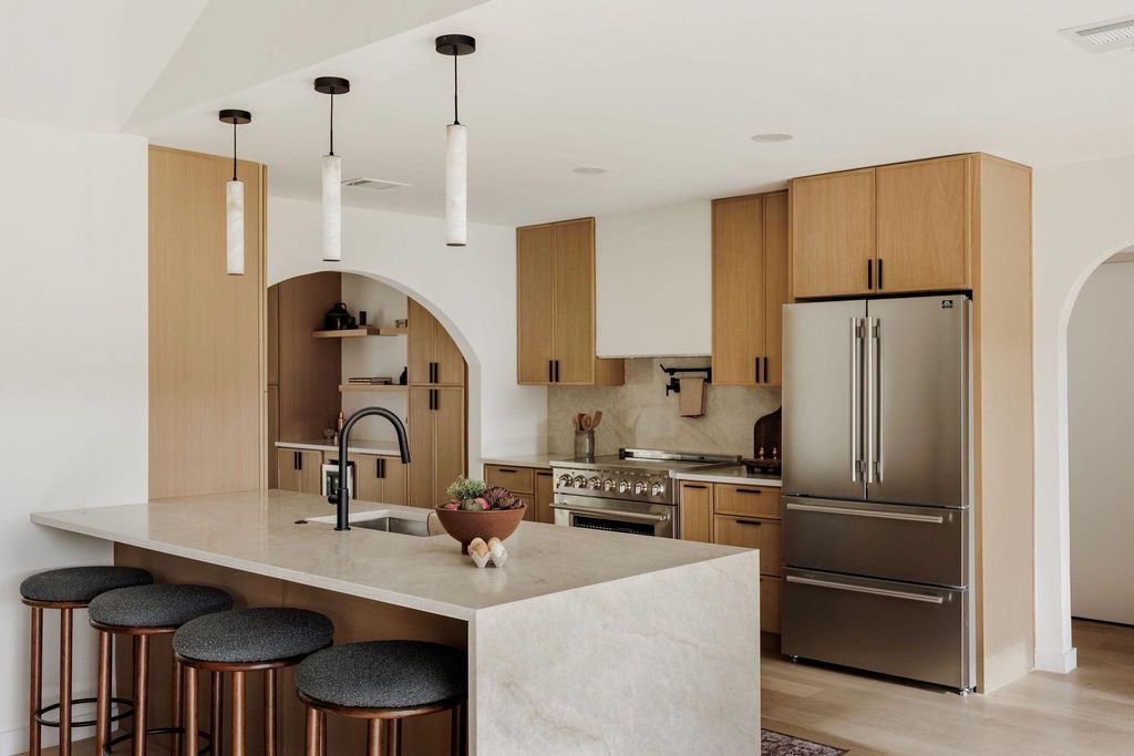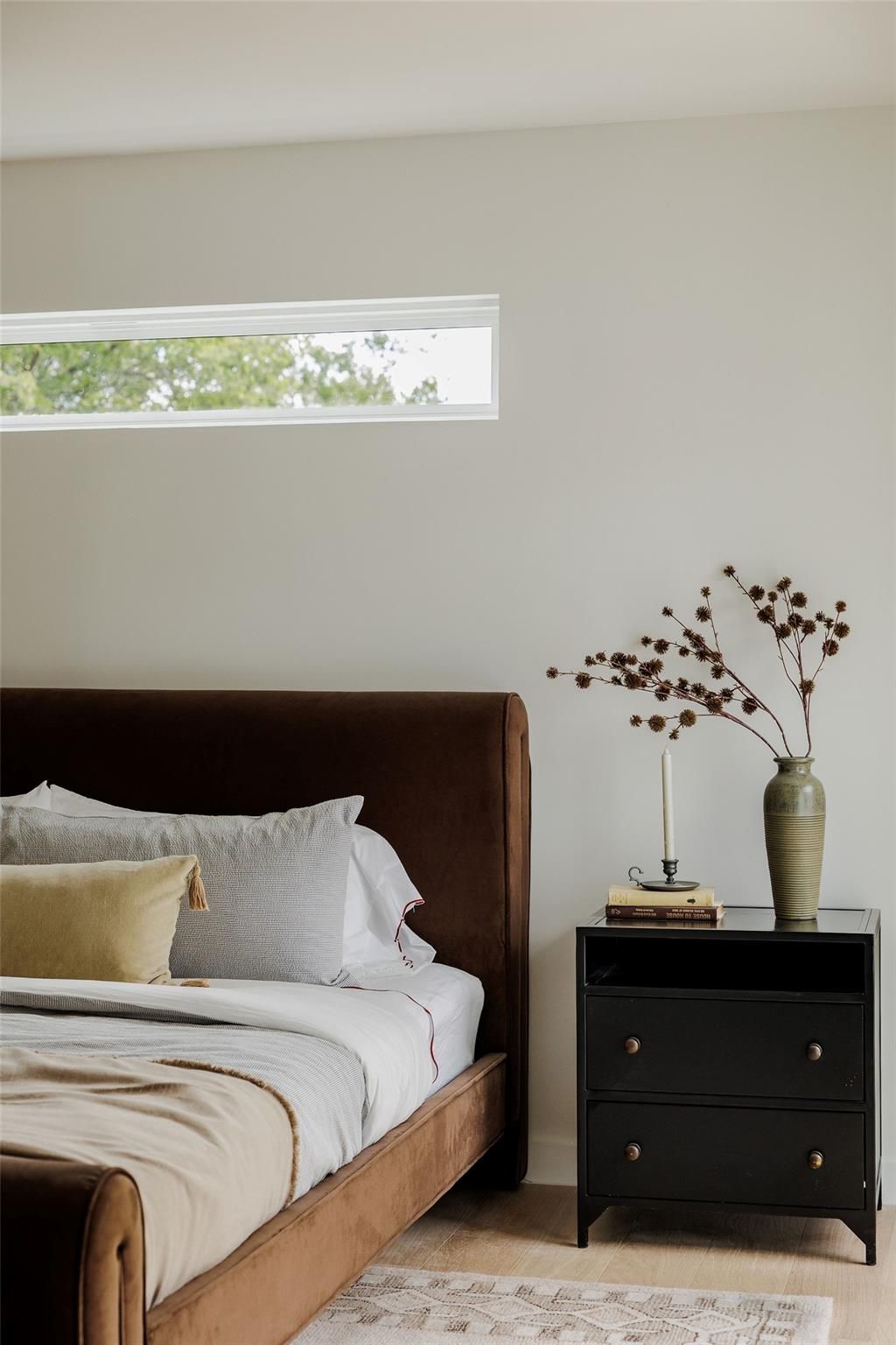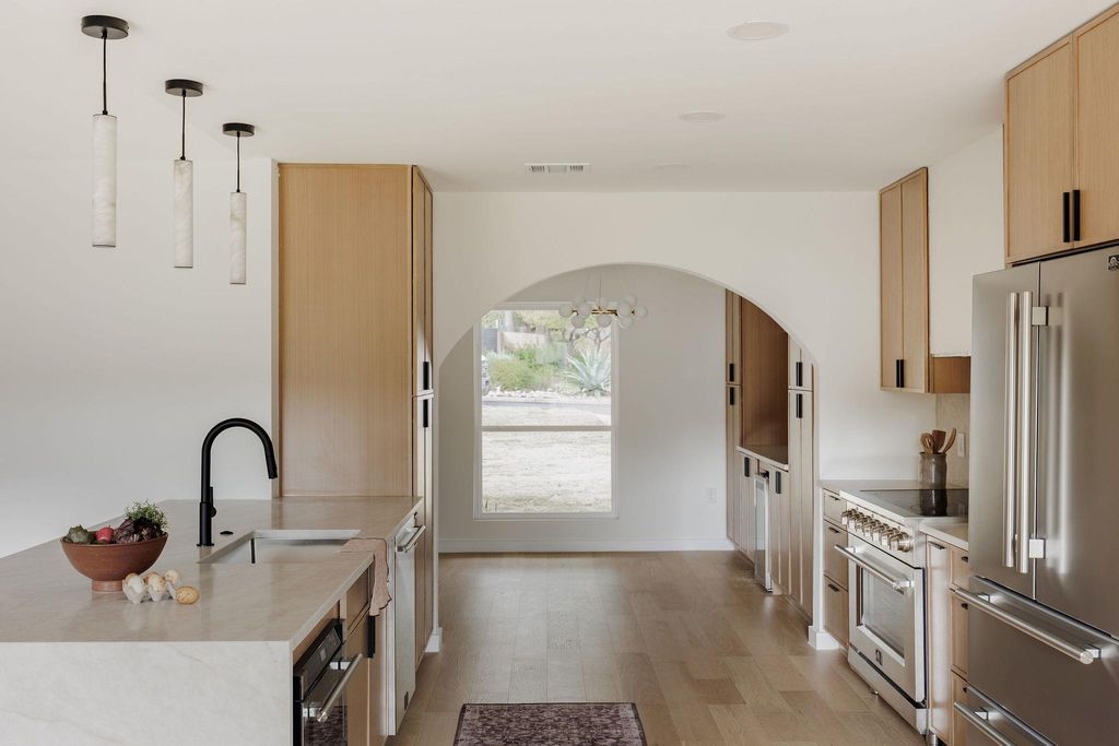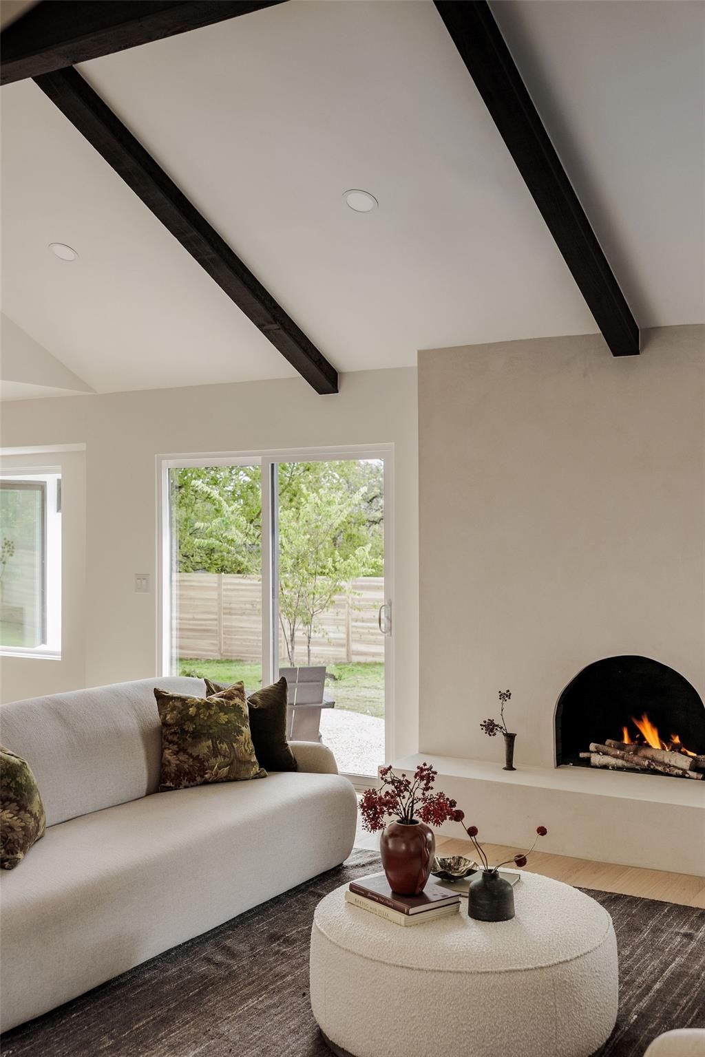 Breathtaking Mid Century Restoration in the highly coveted Castlewood Forest neighborhood! :: Stunning sleek modern exterior design w/ beautiful tree setting. :: A Warm, earthy kitchen design features new oak cabinets, Taj Mahal quartz countertops w/ waterfall backsplash, an oversized breakfast bar and FORNO appliance suite with 36" Stove. :: Living room boasts a vaulted ceiling w/ original wood beams plus stunning stucco arched fireplace. :: 2 Primary Bedrooms w/ a Private Spacious Main Bedroom plus bathroom ensuite featuring dual vanity, Soak Tub and Spa-like walk-in Shower :: Engineered hardwood floors flow throughout this spacious and open floor plan w/ an abundance of natural light. :: Entry foyer plus adjoining dining room and/or second living area features built-in oak cabinets, 2 pantries, white oak floating shelves & a wine refrigerator. :: System upgrades include new HVAC system, full electrical upgrade, black/white Elevate Windows, water heater, 30/yr architectural roof, irrigation, sod and wood fence. :: Close to beautiful parks including the Stephenson Nature Preserve, Armadillo Den, HEB and highly rated Cowan Elementary School.