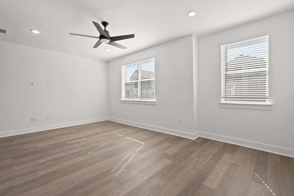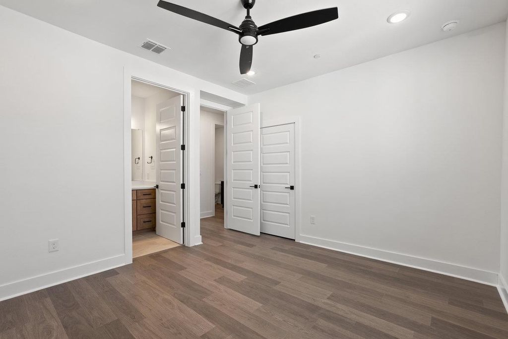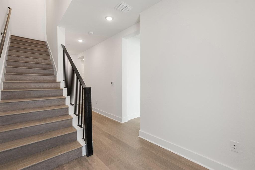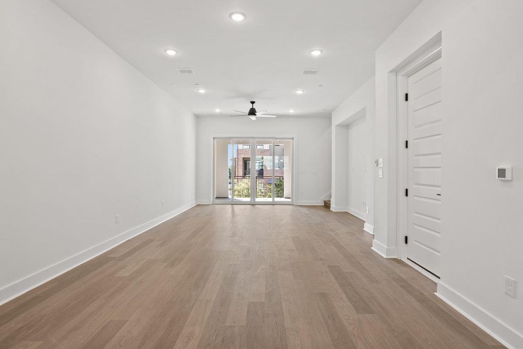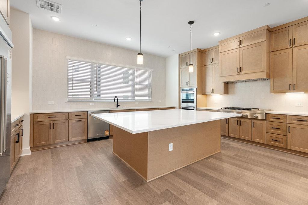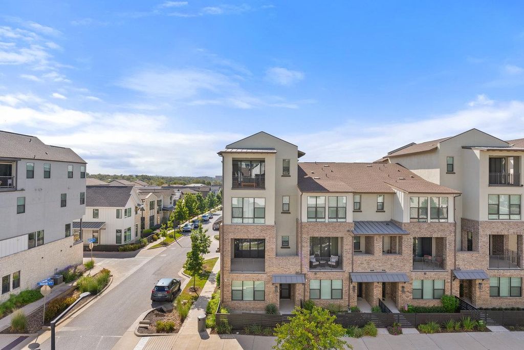 This Four-Story Townhome showcases contemporary sophistication with Four Bedrooms, Four Full Baths, and Two Half Baths, thoughtfully designed for comfort and style. A private elevator allows effortless movement between levels, while a first-floor guest suite offers exceptional privacy and flexibility. The chef's kitchen is a true center piece, featuring soaring 10-foot cabinetry, a striking quartz island, and refined finishes that blend elegance with everyday function. Sunlit living areas open seamlessly to two covered balconies, creating a perfect setting for indoor-outdoor living. Wide plank RevWood flooring, professional landscaping, and a sleek modern European façade enhance the home's architectural distinction. Ideally located just minutes north of downtown Austin, this residence offers a walkable lifestyle with access to fine dining, boutique shopping, wellness, and recreation"”all within a vibrant, well-established community.