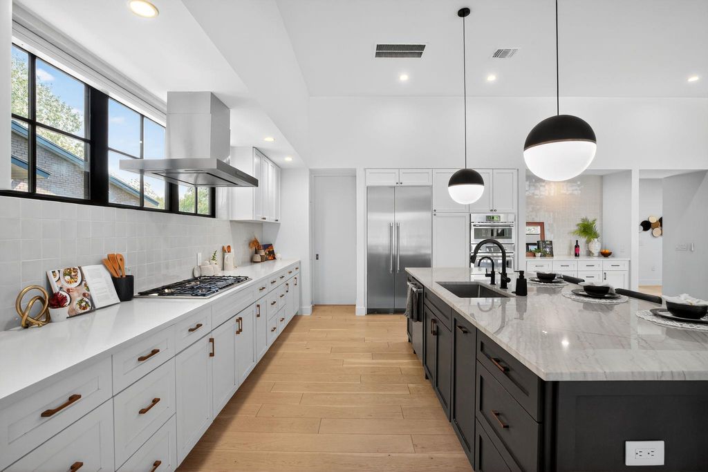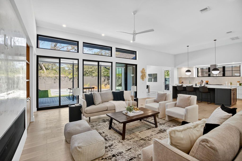 This stunning modern farmhouse located in the heart of Allandale offers a perfect blend of luxury, comfort, and thoughtful design. Built by The Muskin Company and designed by acclaimed local architect Don Harris, this 4-bedroom, 3-bath home sits peacefully on a quiet, tree-lined street and is surrounded by mature shade trees. From the inviting front porch and private courtyard to the L-shaped layout that wraps around a serene pool and patio, every detail of this home was designed to create a warm, stylish retreat. Inside, soaring ceilings, large windows, and carefully placed doors bring in abundant natural light and create a seamless connection to the outdoors. The interior features 7.5" wide white oak flooring throughout, a modern plaster-finished fireplace flanked by custom built-ins, and elegant Ann Sacks tile accents. The open floor plan offers flexibility for living, dining, and entertaining, while maintaining a cozy, intimate feel. At the heart of the home is a chef's kitchen with quartz and natural stone countertops, shaker-style soft-close cabinetry, a spacious butler's pantry, and premium Thermador appliances"”including a built-in refrigerator and freezer. This space flows effortlessly into the living and dining areas, making it perfect for both everyday living and special gatherings. The primary suite is a private sanctuary with peaceful backyard views and direct outdoor access. Its spa-inspired bath features a freestanding soaking tub, a walk-in shower with dual shower heads, floating oak cabinetry, Carrara marble finishes, and luxurious lighting"”all designed to make daily routines feel like a retreat.