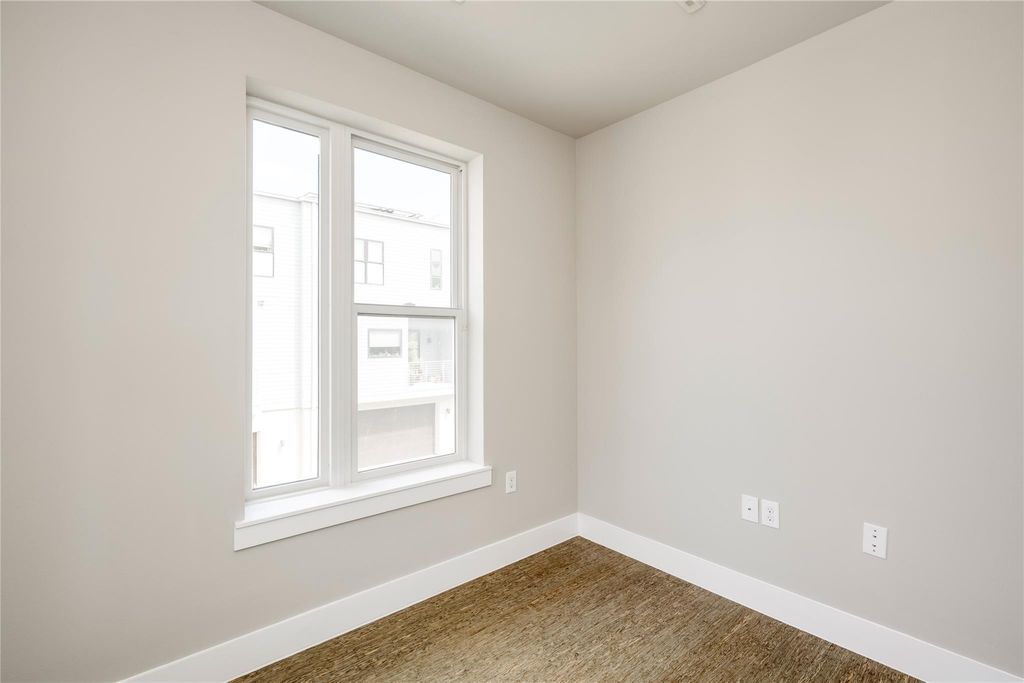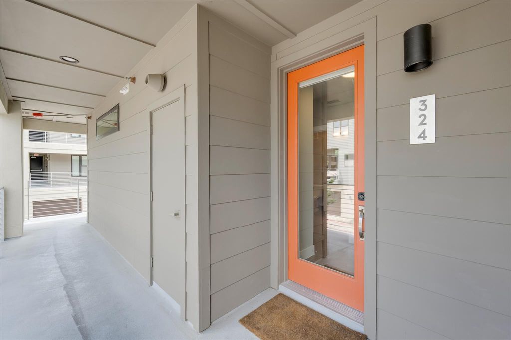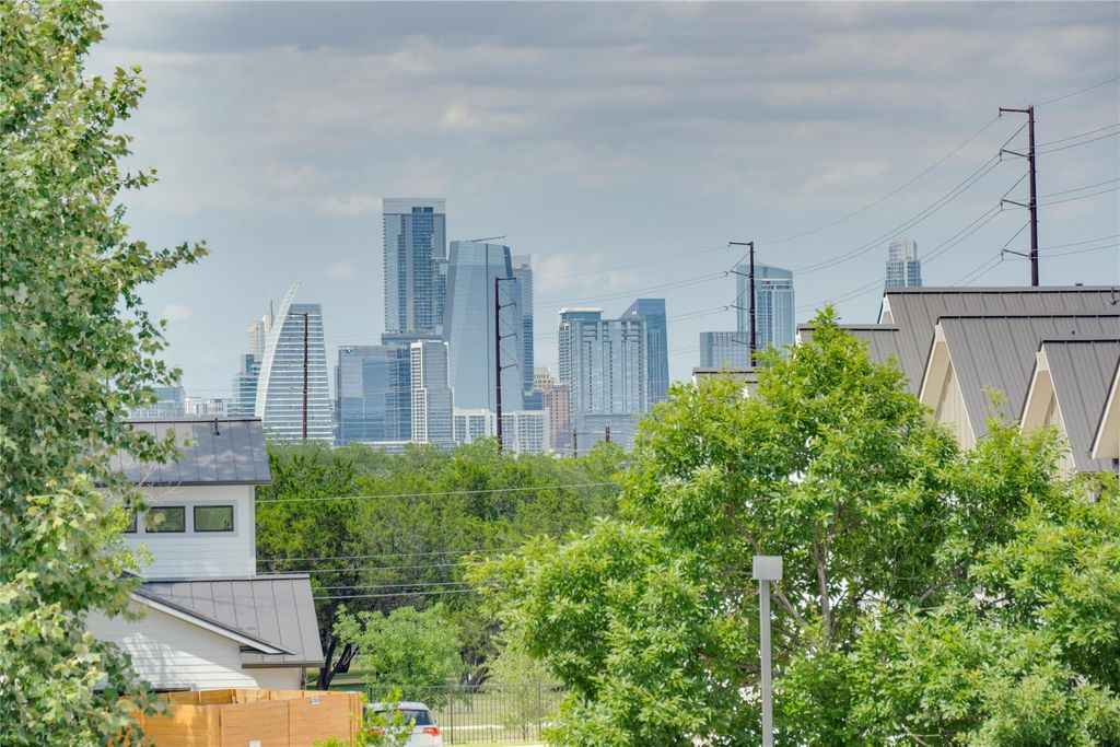 This condo is perfectly located as a corner unit with a private entrance near the stairwell for quick access when entering/exiting and plenty of space and privacy from surrounding unit entrances. As soon as you step inside, you will immediately be be taken in by the gorgeous downtown Austin views visible through the large glass doors leading to the balcony overlooking the courtyard. The unit includes a large 25' x 14' first-floor garage with space for parking and storage. Interior features include one bedroom with a walk-in closet, one full bathroom with granite countertops, and a flexible bonus room that can be used as an office, den, workout room, or second living space. The family room and covered balcony offer direct views of the city skyline - unique only to units positioned on this side of the building.Inside, the living and dining areas have vinyl "wood" flooring, and the kitchen is equipped with stainless steel appliances, gas cooking, granite countertops, and a breakfast bar. There are ample cabinets for storage and a built in desk/workspace directly off of the kitchen. There is a laundry room through the bathroom with stackable washer and dryer that convey. Recent updates include HVAC servicing, oven and refrigerator maintenance, and a renovated shower. The community offers a pool, clubhouse, two dog parks, an amphitheater, green-space, and a community garden. Located in a central area with quick access to downtown Austin.