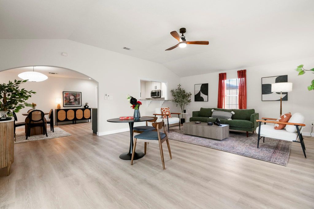 Design-forward living in Windsor Park. This 4-bed, 2-bath, 1,534-sq-ft home pairs a spacious, flexible layout with fresh updates and an easy North Austin location minutes from Mueller's parks, dining, and weekly market. Inside, a generous living room stretches out with space for a conversation lounge plus dining or a game table"”host the watch party and dinner without squeezing. The refreshed kitchen brings personality with gorgeous new cabinetry, stainless appliances including a wine fridge, and mid-century-inspired lighting that ties the look together. Four bedrooms offer options: a serene sleeping wing, office, guest room, or fitness nook"”choose your flow. Thoughtful refreshes meet practical upgrades including: fresh interior/exterior paint, new interior doors and trim, new flooring, new roof, new sliding glass door, updated bathrooms, and a new mini-split for efficient comfort. Here, life flows easily"”start the day with coffee on the newly poured concrete patio, wind down with golden-hour hangs, and host weekend cookouts without a scramble. The newly installed fully fenced yard is ready for pups, play, or a raised-bed garden, and the refreshed shed keeps bikes and gear organized for quick rides to Mueller's parks, trails, and weekly market. A French drain helps keep things tidy after Texas rain, so your plans don't skip a beat. It's an outdoor setup built for everyday living"”quiet mornings, casual dinners, and spontaneous get-togethers with friends. Live close to everything you love: neighborhood green spaces, coffee spots, and the energy of Mueller"”plus quick access to I-35, 290, and Downtown when you need it. Style, function, and location meet on Wellington.