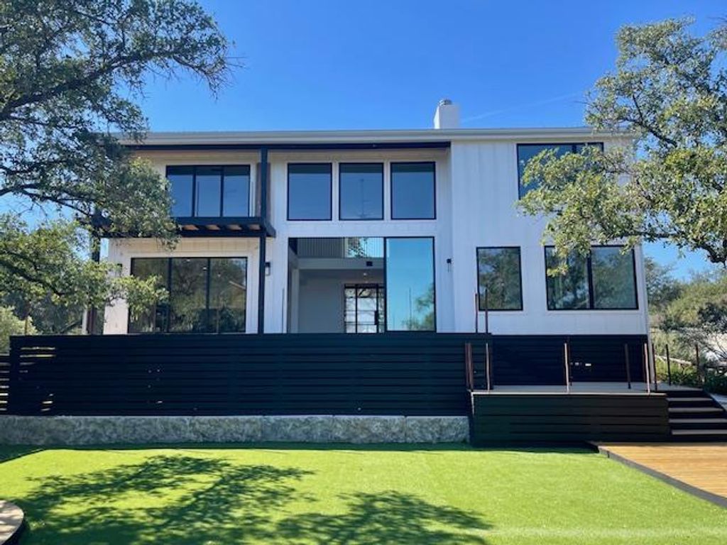 Stunning Lake Travis Waterfront Retreat "” Fully Remodeled, Deep Water Access Discover luxury lakeside living in this extensively remodeled Lake Travis waterfront home, perfectly positioned in a protected deep-water cove. Featuring 4 bedrooms, 5 full baths, and 2 half baths, this residence blends modern elegance with exceptional functionality"”ideal as a full-time home or luxury getaway. Interior Highlights Designer kitchen with rift-cut white oak cabinetry, expansive island, and premium chef's appliances 60" Wolf range, dual column refrigerators, and two wine coolers Spacious living and dining areas with seamless indoor-outdoor flow Beautifully updated bathrooms and high-end finishes throughout Outdoor & Lifestyle Features Multiple elevated decks with turf landscaping, perfect for entertaining Firepit overlooking Lake Travis, offering year-round sunset views Direct access to deep, protected Lake Travis water"”ideal for boating and water recreation Climate-controlled garage with half bath, kitchenette, and abundant storage This turnkey lake house delivers exceptional craftsmanship, breathtaking water views, and every amenity needed for luxury lakeside living. Estimated completion December 2025.