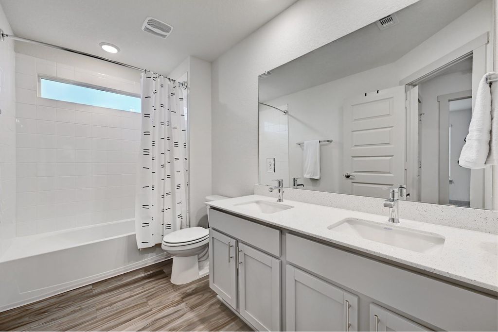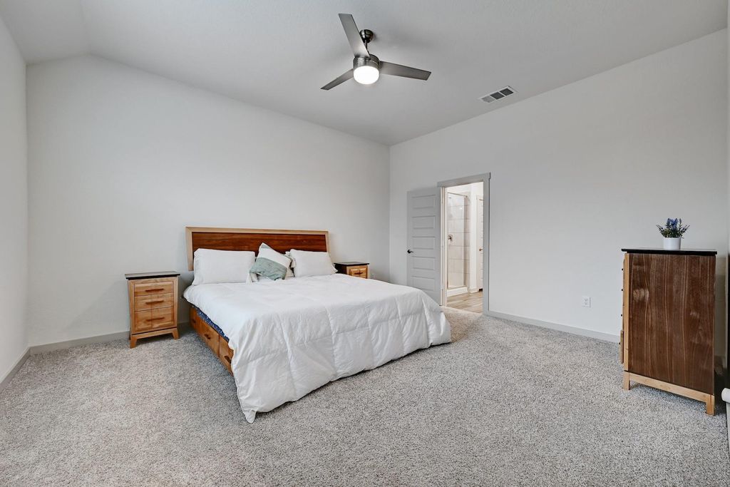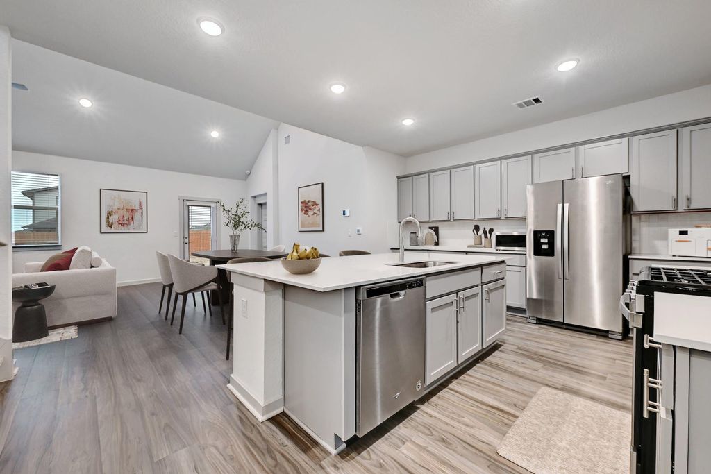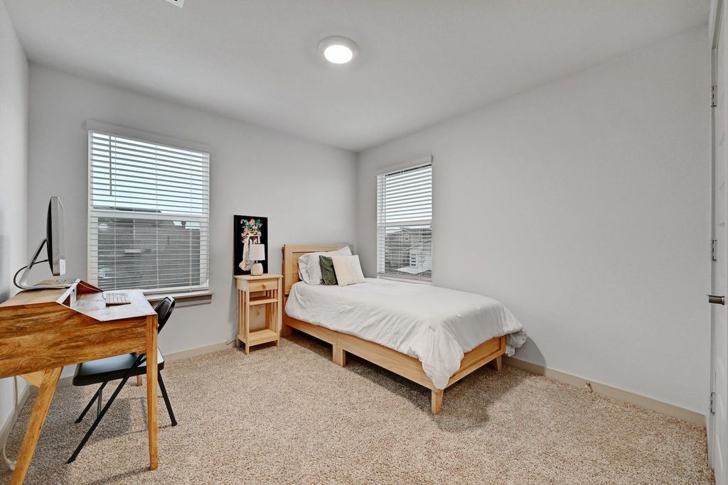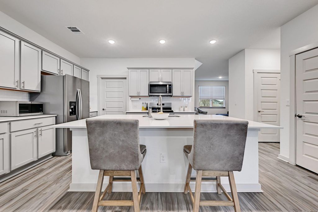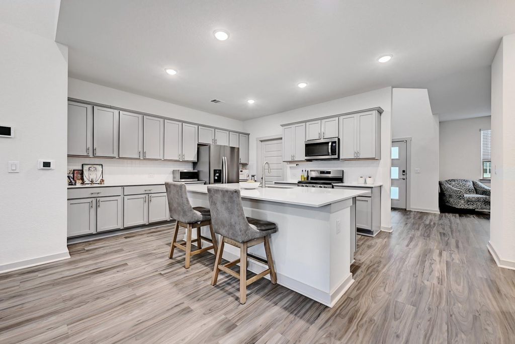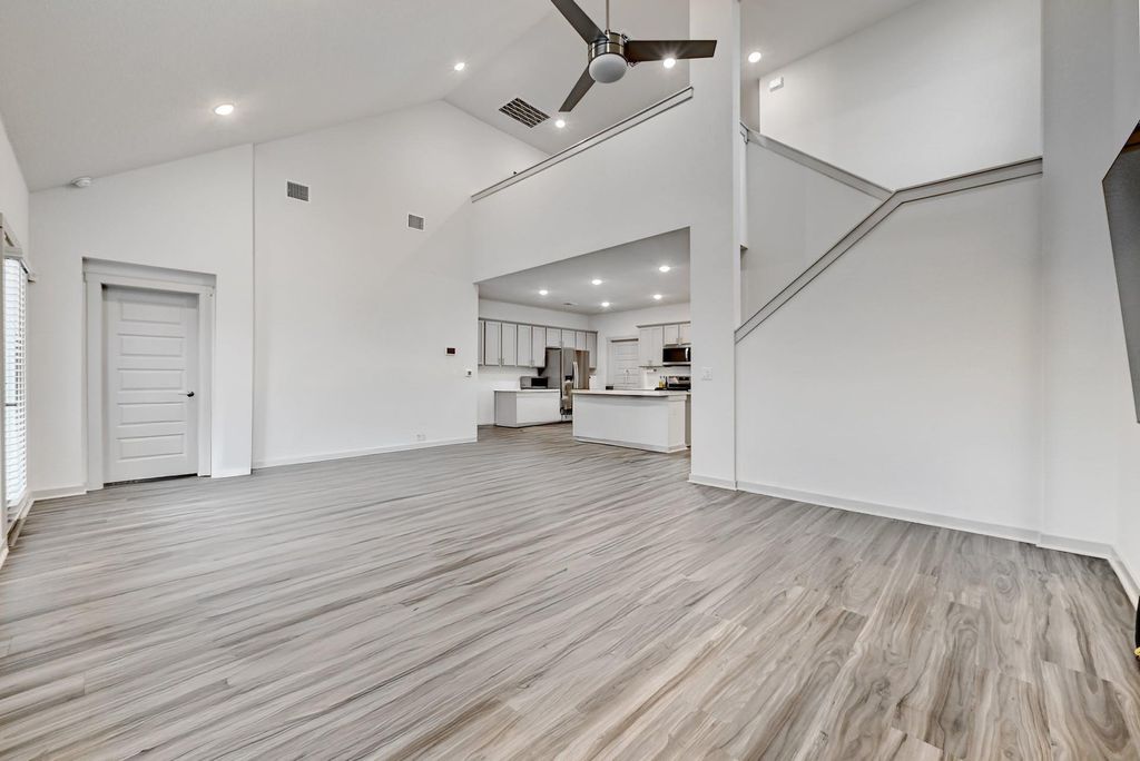 Beautifully maintained & immaculate home in the established Parker Station community, located just min from DT Austin, UT, & ABIA! This spacious 2,494 sq ft Declaration floor plan blends comfortable living with modern design. Recently refreshed with new carpet & interior paint, the home feels bright & move-in ready. The inviting exterior offers simple, manicured landscaping and cozy covered front porch. The open-concept main floor features high ceilings, modern ceiling fan, abundant natural light, and durable luxury vinyl plank flooring throughout the living areas. A modern glass front door opens to the foyer and flexible front room that could be used as a home office, second living, or dining space. The centrally-located kitchen is complete with a large center island & breakfast bar, an abundance of shaker style cabinetry, Silestone quartz countertops, & high-quality stainless-steel appliances, including gas range. With views of the dining area and spacious family room, the kitchen is ideal for entertaining or casual family gatherings. The primary suite is tucked away on the main floor for privacy, and features a vaulted ceiling, en-suite with double vanity, walk-in shower, & a huge walk-in closet customized by California Closets with plenty of shelving & drawers for organization & a built-in vanity area! Upstairs you'll find three additional bedrooms (two with Cali-customized closets), a full bath, and a large game room, perfect for movie nights, exercise room or a play area (also with a California closet). Enjoy relaxing on the covered back patio overlooking a private, fenced (freshly stained) backyard with plenty of room to expand outdoor living or build a pool. Parker Station residents have access to a community pool, playground, picnic pavilion with grills, and clubhouse. Ideally located off 290, 45, and 183S for easy access to retail, restaurants, and major employers (including Tesla), this home offers both comfort and convenience to Central Austin.