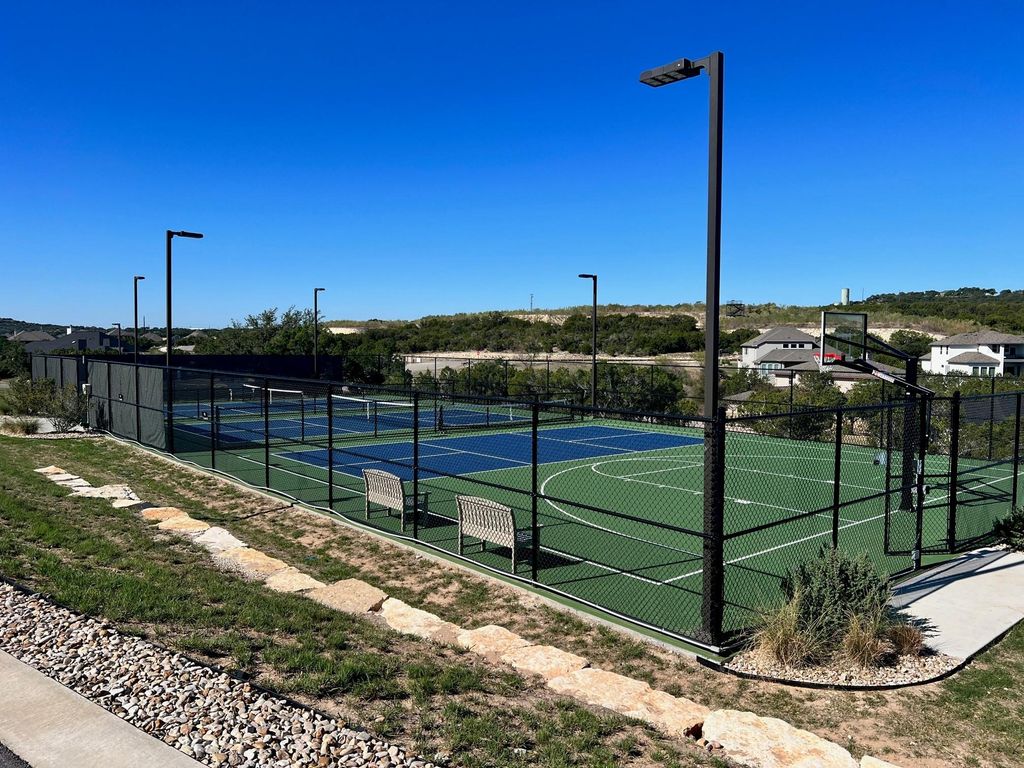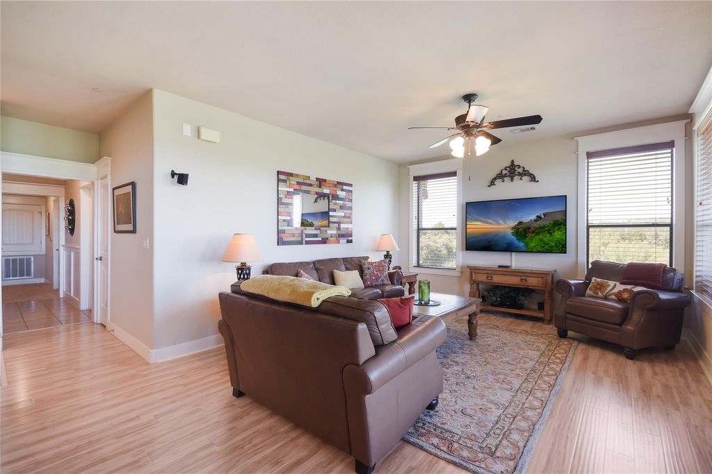 Beautiful panoramic Lake Travis and Texas Hill Country views abound at this luxury hilltop Villa. Newly decorated, this Villa provides you with luxury and convenient access to the extensive amenities at the Hollows Resort. This 3/2 bath villa has over 1440 sq. ft., with a fully equipped kitchen and two dining areas, one indoor and one on the patio. The primary bedroom has a private bath and private access to a porch sitting area. The second and third guest bedrooms are just down the hall and share a full bath. Relax on the oversized back covered porch that includes three comfortable seating areas as well as a grill and large table that seats six. The Hollows Resort has 1500 acres of beautiful Texas Hill Country surrounded by Lake Travis. Just up the hill on Edgewood Way Drive at the highest point of the resort, the Hilltop Smokehouse. This is a great place for family gatherings and has covered seating, a large fire pit, grill, smoker, restrooms, and is a wonderful place to watch the sunset. The Beach Club includes a Grill/Bar, an infinity pool, children's pool, spa pools/hot tub, large smokehouse, fitness center, pickle ball court, hammocks, grills, a sand volleyball court, and access to the lake (with adequate lake levels). And there are 15 miles of hiking trails throughout the resort and meander among the hills and wooded forests down to the lake. The Trailhead Club is an additional amenity provided that includes a pool and pickle ball courts. The full-service Hollows Marina has slips for rental, a fuel dock, and a ships store for your convenience. You can also rent ski or pontoon boats at nearby locations. Lake Travis is a 65-mile-long lake and has many beautiful coves for swimming as well as numerous restaurants, marinas, and services for your days on the water. ******BOUNS******ALSO AVAILABLE WITH THIS PROPERTY IS A BARELY USED BOAT/SLIP AND NEW GOLF CART (ALL NEGOTIABLE UNDER NON-REALTOR ADDENDUM)!