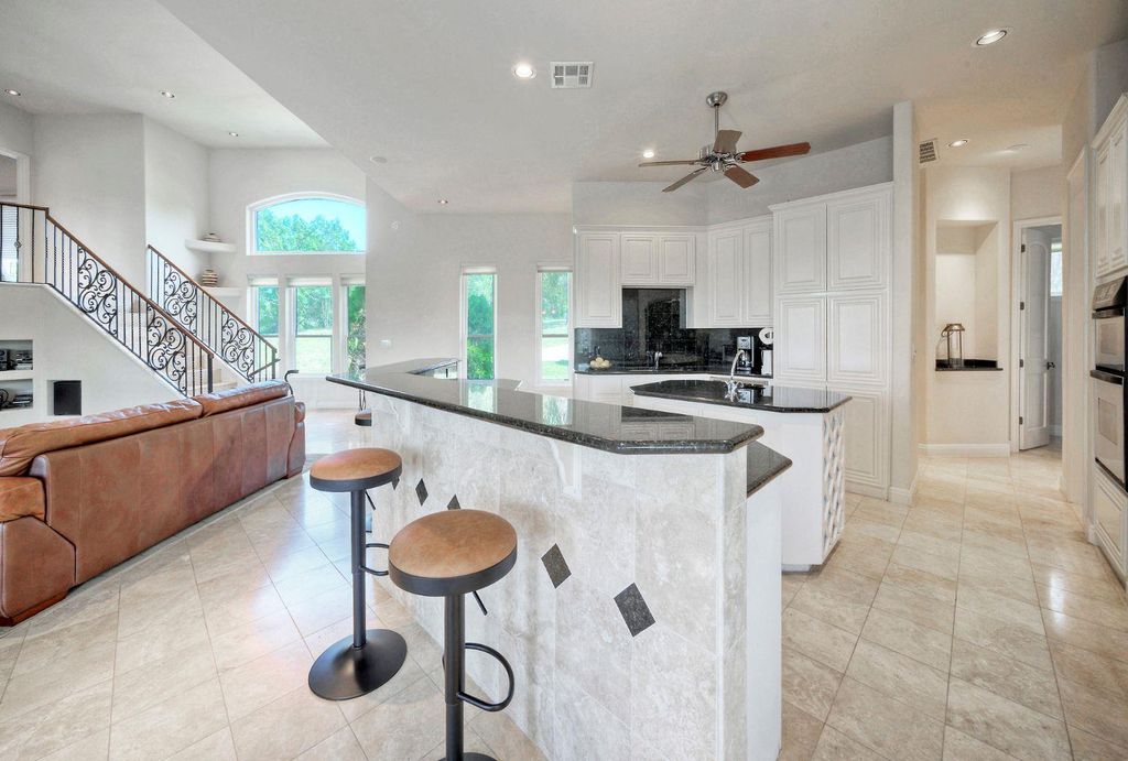 INTERIOR | Breakfast Bar, Built-in Features, Ceiling Fan(s), Chandelier, Double Vanity, Entrance Foyer, Granite Counters, High Ceilings, Kitchen Island, Master Downstairs, Pantry, Recessed Lighting, See Remarks, Smart Thermostat, Soaking Tub, Storage, Walk-In Closet(s), Wet Bar, Wired for Sound |