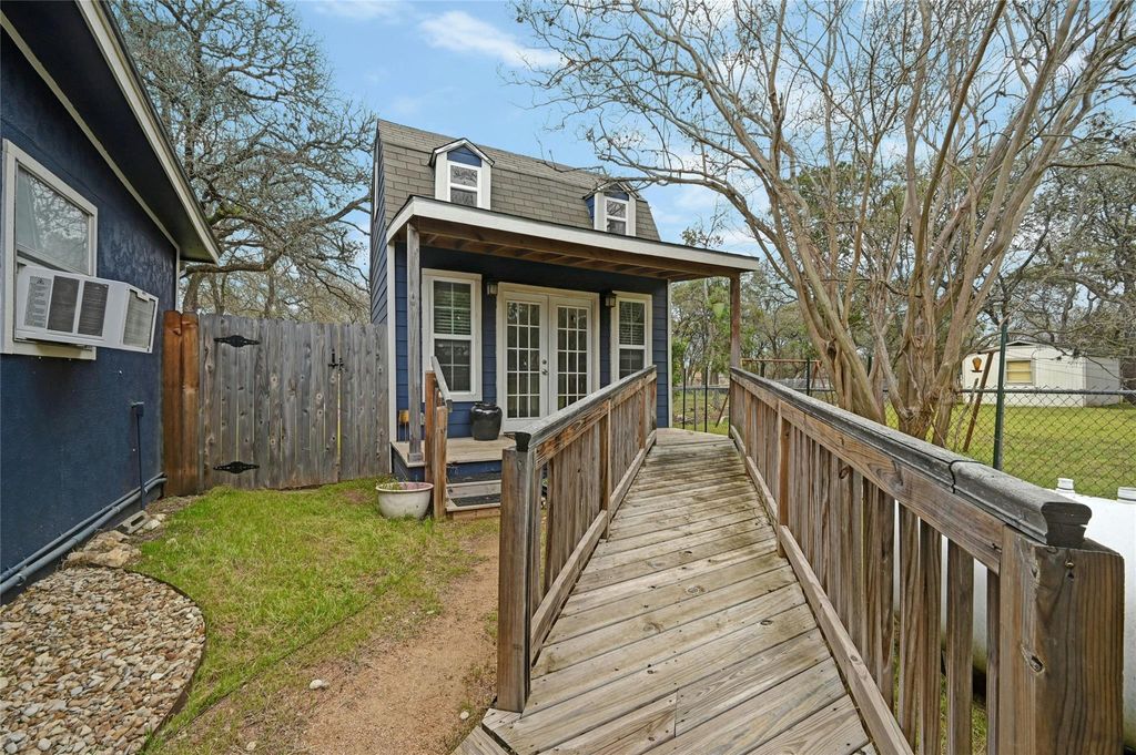 Location. Location. Location! NO RESTRICTIONS!!! The perfect STR compound with multiple structures on-site within walking distance of everything fun! This hidden gem features a true 1960's ranch style home and separate guest house/SheShed/Man Cave on almost .5 acres of land IN the City! Conveniently located within walking distance of coffee, dining, shopping & the entire Manchaca Entertainment District and a short drive to I35, Mopac/Loop 1, 45 & 130 for a quick commute anywhere! The main structure features hardwood flooring, an open dining/living area perfect for entertaining, spacious primary suite with new carpet, walk in closets, retro tile & fresh paint throughout! The second structure was once a private salon and features a private yard with a private entrance, two story lofted interior living and a fully plumbed half bath- perfect for a home office, studio, crafter's paradise, guest house, you name it! Not only does this unique property sit on almost half an acre of completely level usable yard space, it also features an oversized rear facing garage perfect for tinkering with plenty of room for storage! You do not want to miss this fabulous property and all of the wonderful unique charm it has to offer!