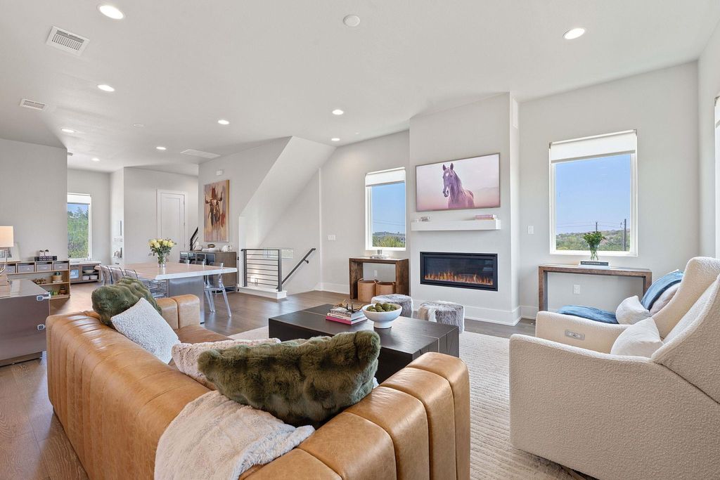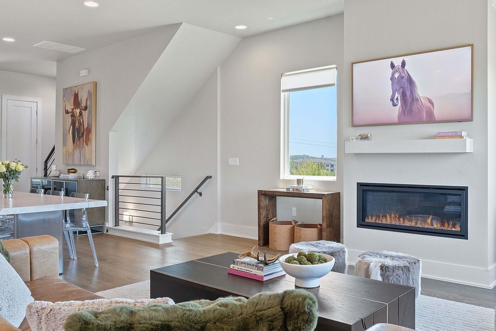 Ideally situated between the vibrant energy of downtown Austin and the natural beauty of the Texas Hill Country, this corner-lot home in the desirable Cayena Creekside community offers the perfect blend of style, comfort, and convenience. Step inside to an open floor plan designed to maximize space, with soaring 10-foot ceilings and wide-plank hardwood floors flowing seamlessly throughout. Abundant natural light fills the living spaces, complemented by a cozy gas fireplace that creates a warm, inviting atmosphere. Light-filtering Cora roller shades and window tinting enhance energy efficiency and maintain year-round comfort. The chef-inspired kitchen strikes the perfect balance of function and style, featuring stacked cabinetry, quartz countertops, a full-height backsplash, and a generous island framed by designer lighting"”all overlooking serene, lush green views. The primary suite is a true retreat, complete with a custom walk-in closet and a spa-like bath. Two additional bedrooms offer flexibility for family, guests, or a dedicated home office. Step outside to your private rooftop terrace and take in panoramic views of the Hill Country and Austin skyline. Down below, enjoy a low-maintenance backyard with premium, pet friendly turf, perfect for effortless outdoor living. Residents benefit from HOA-maintained front yards and access to private community trails"”all just minutes from downtown Austin, Zilker Park, and everything the city has to offer.