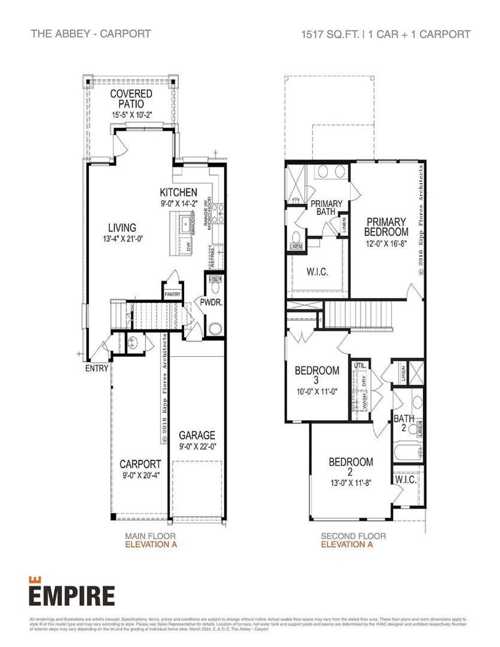 MLS# 7268403 - Built by Empire Homes - Ready Now! ~ This 3-bedroom, 2.5-bathroom Abbey floor plan makes most of its square footage, allowing you to design the home you've always wanted. The main level features a spacious living room which flows directly onto the covered patio "” perfect for entertaining guests or simply enjoying a meal outdoors. The second level is where the primary bedroom can be found, equipped with a luxurious ensuite and walk-in closet. You'll also find a washer and dryer on this level, making laundry easily accessible. The Abbey Carport model features a 1-car garage and 1-car carport