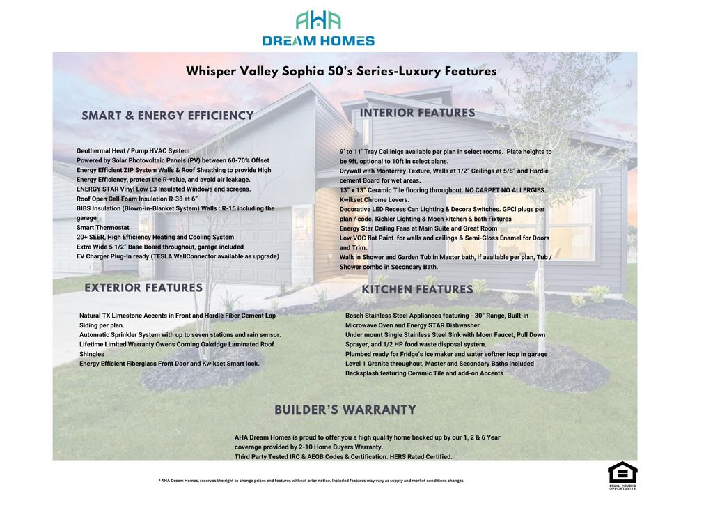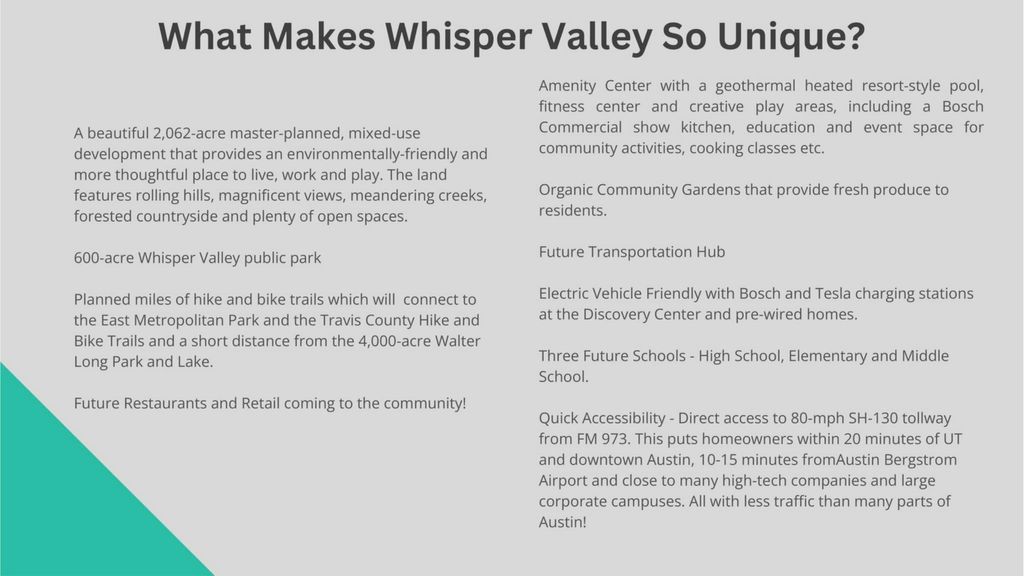 0% Down NO PMI Financing Available! 5.125% Fixed Rate or 4.75% with 10% Down (terms & conditions apply). Hurry "” Whisper Valley homeowners receive a tax credit between $7,000-$10,000 through end of year.* Step into this beautiful new Summerville Plan by AHA Dream Homes, perfectly positioned on an expansive 11,652 sq. ft. greenbelt homesite "” the largest lot in Phase 3. Sustainability meets modern luxury with an open-concept layout, premium finishes, solar panels, geothermal heating and cooling, smart-home wiring, and EV-ready infrastructure. Located in Whisper Valley's award-winning eco-community, you'll enjoy access to an on-site organic farm, miles of trails, abundant green space, and a resort-style amenity center with pool, fitness facility, and dog park, plus a new high school opening in 2027 and future elementary and middle schools planned onsite. All in a prime location just 7 minutes to the Tesla GigaFactory, 12 minutes to Austin Bergstrom International Airport, and 25 minutes to Downtown Austin and The Domain.