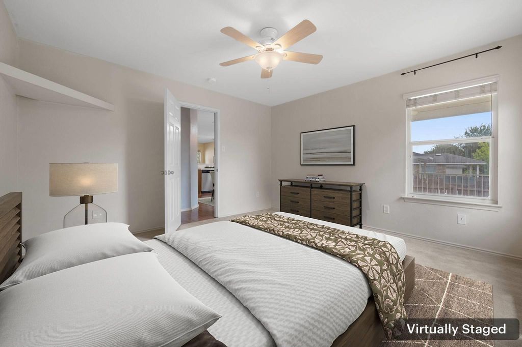 Nestled in the heart of the welcoming Brookfield community, this charming single-story home at 14508 Spearmint Tea Trail offers a perfect blend of comfort and convenience. This beautifully maintained home features three spacious bedrooms and two full bathrooms. The open and inviting floor plan is accentuated by stylish flooring that flows seamlessly through the living, kitchen, and breakfast areas. The heart of the home is the well-appointed kitchen, which comes equipped with a dishwasher, disposal, free-standing range, and refrigerator. It opens to a cozy breakfast area and the main living space, creating an ideal environment for both daily living and entertaining. Step outside to the covered back patio, a perfect retreat for morning coffee or evening relaxation. The primary suite is a true sanctuary, boasting a luxurious en-suite bathroom complete with a double vanity, a relaxing garden tub, a separate shower, and a large walk-in closet. The additional bedrooms are generously sized and share a well-maintained second bathroom. Situated on a 0.14-acre lot, the property includes a two-car attached garage and is close to the elementary school and beautiful neighborhood park. Residents of this community enjoy easy access to major highways, placing them just minutes from the employment hubs and attractions of both Austin and Round Rock. This home offers a tranquil suburban feel without sacrificing the conveniences of city life.